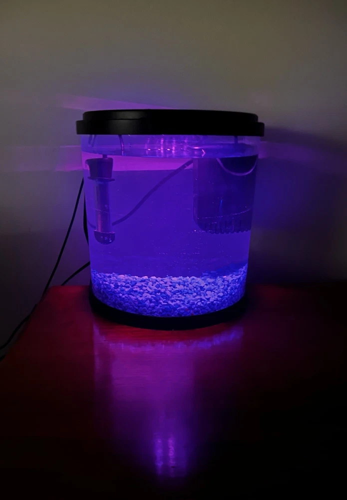 This mini aquarium is perfect for small spaces! The sleek half-moon design looks modern, and the built-in filter, heater, and colorful lights make setup a breeze. The glass is crystal clear, so my betta fish looks amazing swimming around. It’s compact but has everything needed for a healthy, happy fish—great value for the price!