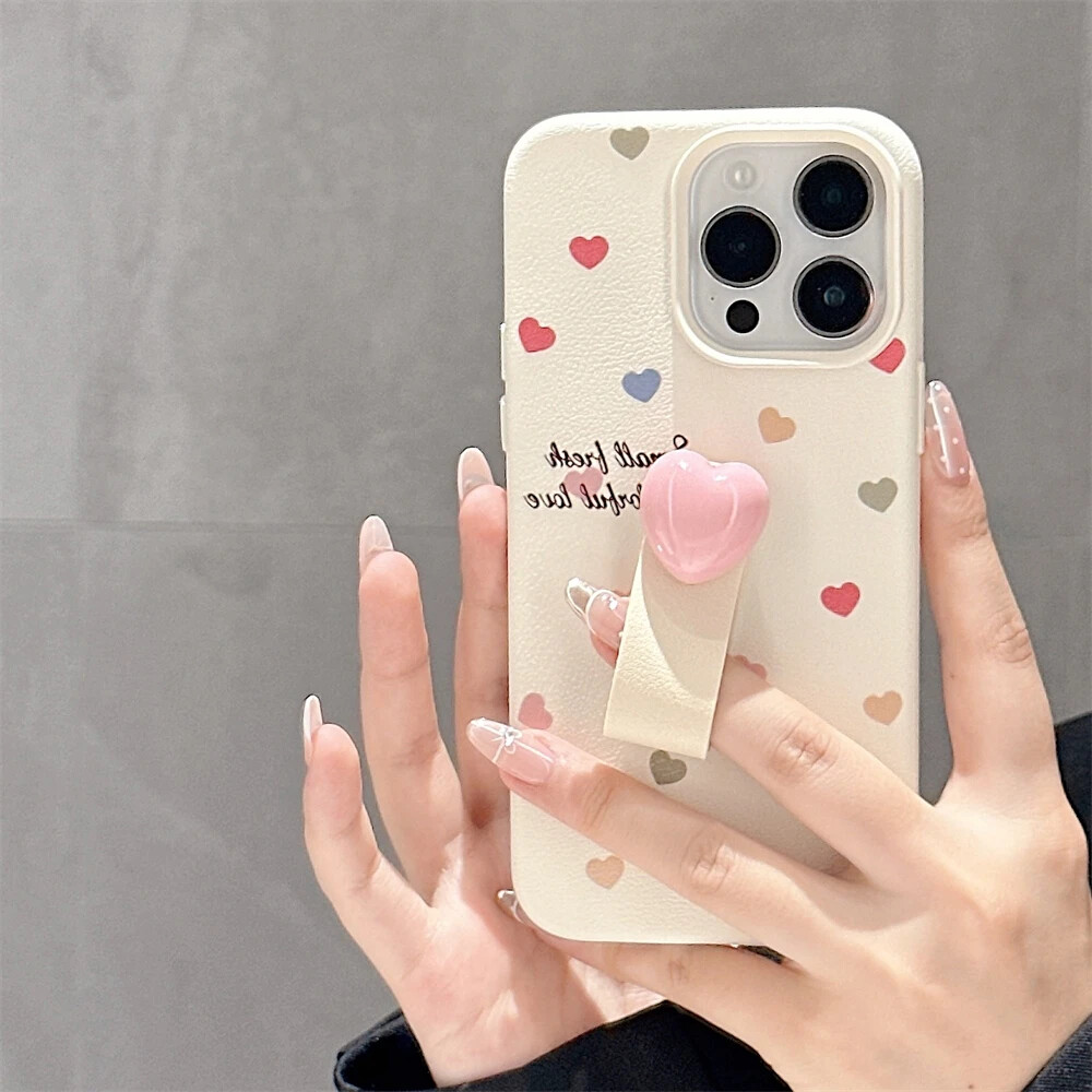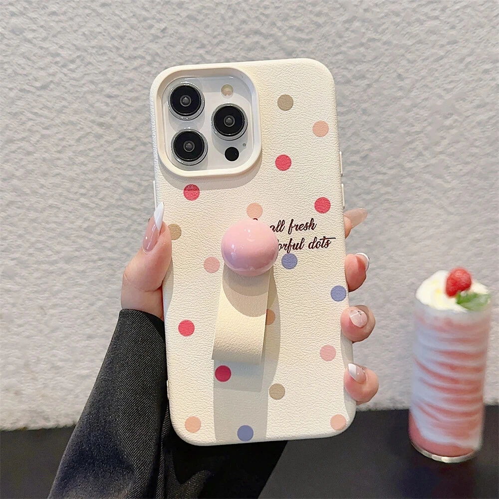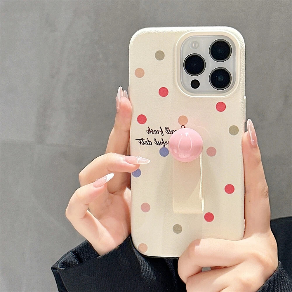 Colorful Love Heart Polka Dot Ring Holder Case for iPhone 15 14 13 12 Max