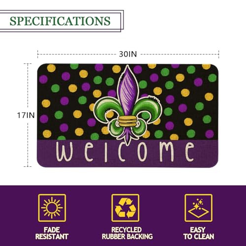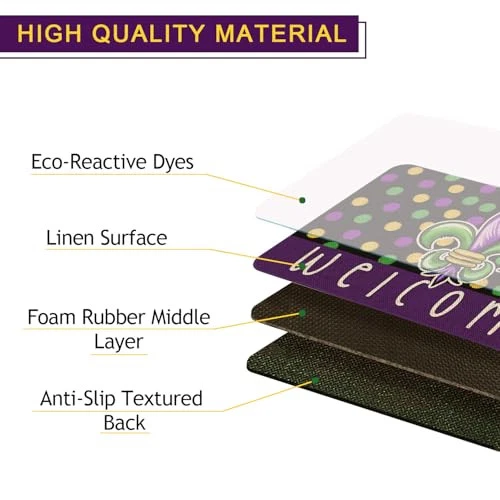 30 Days Return Policy Fast Delivery Trusted seller Mardi Gras Welcome Door Mat 30x17 Inch Carnival Fleur De Lis Doormat Indoor Outdoor Entrance Floor Mats Non-Slip Washable Mardi Gras Decor Rugs Product Description High quality material : The mardi gras welcome door mat is made of high quality linen, tear-resistant, soft, thick, stain-resistant, shrink-proof easy to air dry, protect your floors from moisture, stains and scratches. Mardi gras decor: The mardi gras decoration doormat measures 17x30 inches and is 0.3 inches thick, featuring a carnival golden retriever pattern design to enhance your home decor, create a mardi gras atmosp, and a low profile design allows for easy entry. NO tripping: Mardi gras non-slip rubber backing mat can keep fixed and non-slip during use, helping to protect you from slips and trips, providing safety for your family. Easy to clean: These mardi gras floor mat can be machine washed, hand-washed, or cleaned with a vacuum cleaner. Please wash the rug separately in cold water with mild detergent, tumble dry on a low setting, regular vacuuming and the occasional gentle shake off the dust to keep your rug in a good look. Widely used: Carnival door mats not only as a great choice for mardi gras decorations, but also suitable for front of sink, living room, back doors, laundry room, office, bathroom, dinning room, kitchen etc. Shipping Returns Payment Shipping Shipping is FREE to all addresses other than APO/PO boxes in the lower 48 states. All our stock ships from US-based warehouses. Shipped via USPS or UPS (depending on location and package weight) Unless stated otherwise, all orders will ship within 24-72 hours of your payment being processed. Check our feedback to see the great reviews of FAST shipping we offer. Returns As our valued customer, we will do our best to make sure the product you receive arrives to you on time and as expected. If you are not satisfied with your purchase, please contact us within 30 days of receiving your order to process a return. Payment We currently accept payment via eBay managed payments only. Once payment is cleared, we will dispatch your shipment within 1-3 business days. Please refer to the "Shipping" tab for more information regarding shipping speed to your destination.