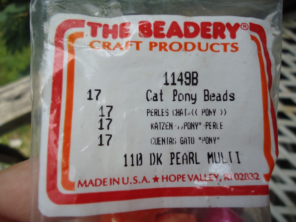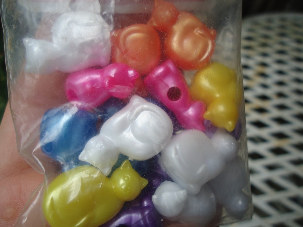 The Beadery Cat Pony Beads Pearly Pink Blue Purple White Yellow Orange Novelty Kitty Cat Decorative Jewelry Making Beads. Vintage Unopened Made in USA NOS pack of 17