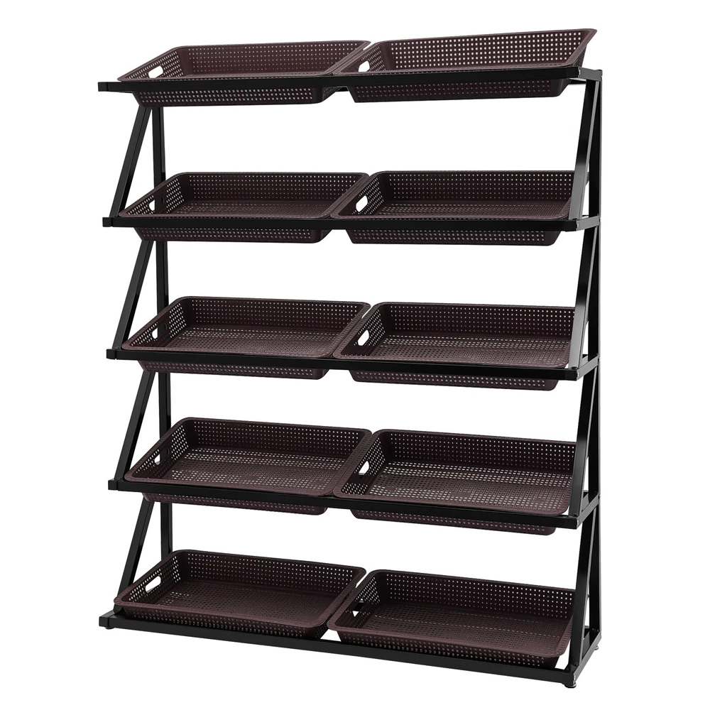 Market Retail Display Rack Shelf + 10x Merchandiser Fruit Vegetable Snack Basket Retail Display Rack Market Shelf Merchandiser Fruit Vegetable Snack Basket Set Description Whether you need a market shelf for foods, fruits, etc., or a store shelf to store your merchandise, you can use our product to display the items you sell. The high-quality iron ensures it has great durability, 5 tiers make it easy for you to store and display, and the overall black and cooffee color can fit in with most store decorations and bring a different style to your home or store. Key Features Ample Space: The overall height of the 5-tier design is 59.06 inches with 10 hollowed-out plastic boxes (two for each tier), which can be good for listing items and keeping them fresh, giving you a clean and tidy visual experience. You can also order more to create a display gallery. Excellent Load Capacity: The thicker tubes and sturdy triangular structure allow it to hold up to 220 lbs of weight to meet your vegetable and fruit placement and display needs. Thoughtful Design: Reasonable gaps make it easy for you to place plastic boxes, and the open and tilt design makes it easy for you or customers to select items. Durable : It is made of high-quality iron with a high temperature spraying treatment , which will not rust or corrode, and is durable and environmentally friendly to meet your long-term storage needs. Versatile Decoration: The elegant black color and simple lines make it a work of art and can be adapted to most home or store décor styles. Easy to Assemble : With complete accessories, you can assemble it quickly and easily and enjoy the fun of the assembly process. Effortless Clean: Thanks to its smooth surface and simple structure, you can wipe away stains with a soft rag. Ideal Gift: Thanks to its practicality and beauty, you can give it to your friends or family as a Christmas, Thanksgiving, or housewarming gift. Details Round Edges: The smooth, and burr-free edges make it not only more comfortable to use but also care for your skin. Raised Tier Spacing: It makes it possible to place large items. Hollow Plastic Baskets: They can increase the air permeability of vegetables and fruits to keep them fresh, and at the same time with handles on both sides for easy pick-up. Protective Covers: The protective covers are attached to each protruding part to prevent scratching. Adjustable Feet: You can adapt the shelf to uneven ground by adjusting them. Application It can be used to display food, fruits, vegetables, and other food items, as well as to store figurines, canned goods, spices, drinking water, plates, cosmetics, soaps, books, toys, and other items, which can be used at home, in the kitchen, in the garage, in restaurants, in retail stores, at farmer's markets, and at hawker events. Specification Material: Iron and Plastic Color: Black and Coffee Style: Modern Shape: Rectangular Room Type: Indoor, Outdoor Process: High Temperature Spraying Mounting Type: Freestanding Assembly Required: Yes Product Care Instruction: Wipe with a Soft Cloth Number of Tiers: 5 Number of Compartments: 2 for Each Tier Product Size: 125*35*150cm/ 49.21*13.78*59.06in Load Capacity: 100kg/220lbs Shelf Height: 140cm/55.12in Frame Package Size: 142*38*8cm/56*15*3in Gross Weight: 8.5kg/18.74lbs Baskets Gross Weight: 20kg/44.09lbs Net Weight: 18kg/39.68lbs Package Size: 111*33.25*142cm/43.7*13.09*55.91in Package Included 1* Market Shelf 10* Plast ic Baskets All Accessories for Assembly Notes We send the frame and baskets separately to protect the product from damage during transportation. Please wait patiently for all parts to arrive. Please note that this product does not include fruits, vegetables and other display items. Please allow the slight color difference caused by the shooting light and 1-3cm error due to manual measurement, and make sure you do not mind before ordering. Payment Delivery details Terms of sales About us Contact us Payment We accept ebay payment 。 Fees such as import duties, taxes are not included in the item price or shipping costs. These charges are the buyer's responsibility. Delivery details Shipping: 2-9 working days to: USA Terms of sales We maintain high standards of excellence and strive for hundred percent customer satisfaction. Feedback is very important to us. We hope that you contact us immediately before you give neutral or negative feedback, so that we can address your concerns. It is impossible to address issues if we do not know about them! About us Your satis faction is our ultimate goal. We work hard to earn your trust and future business. Our certified technicians have tested each item before shipping. The unit comes with 1 year limited warranty on all manufacturing defects. a) If you receive a defective item, you may return it or ask for a discount. Please contact us within 14 days after you receive the package. b) What you returned must be intact and in its original packaging as re? u. Customer is responsible for shipping costs of the returned item. c) We will cover the cost of shipping back t with the shipping rate indicated in the registration page. We will send you a new unit or refund the full payment you paid. Thank you. Contact us Business Hour Business Hour: Monday To Friday: 8:30 AM to 5:00 PM (Beijing China time) Due to time zones, our reply to your questions may not be immediately. But within above working time, we will reply your email within 24 hours. If it's non-workdays, please kindly be patient and wait till Monday. Please contact us with ebay message. Please feel free to contact us if you have any questions. Monday To Friday: 8:30 AM to 5:00 PM (Beijing China time) Due to time zones, our reply to your questions may not be immediately. But within above working time, we will reply your email within 24 hours. If it's non-workdays, please kindly be patient and wait till Monday. Please contact us with ebay message. Please feel free to contact us if you have any questions. MPN Does