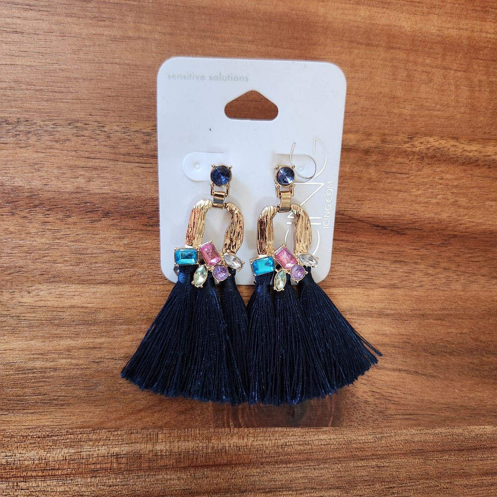 HomeColorful Rhinestone Blue Tassel Pierced Earrings in Goldtone Jewelry
