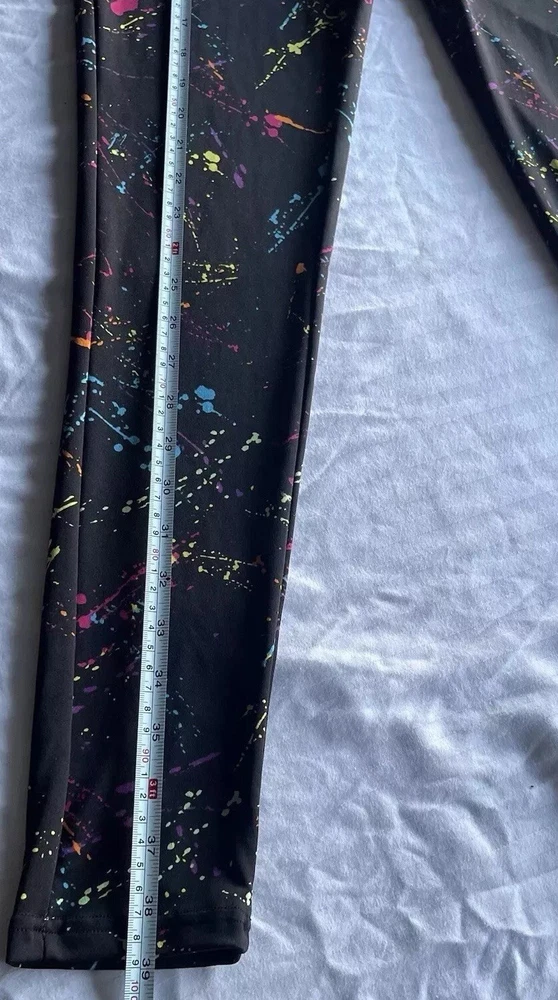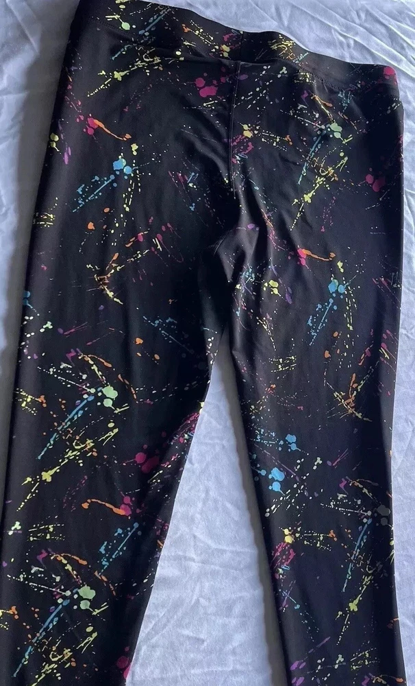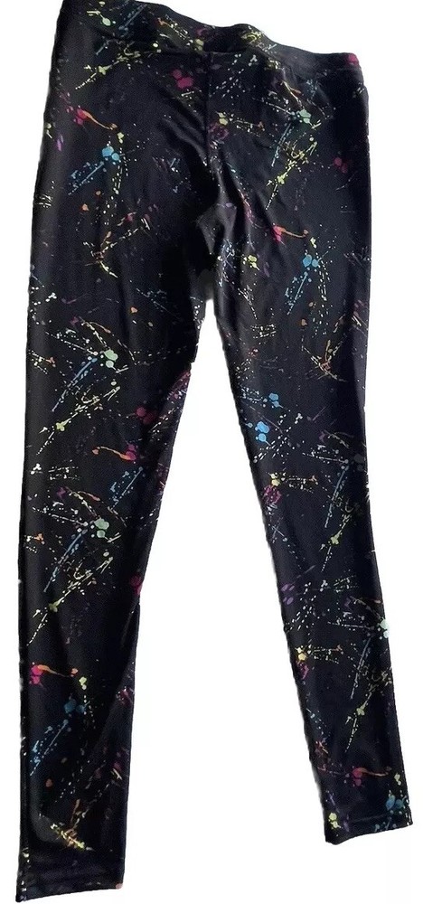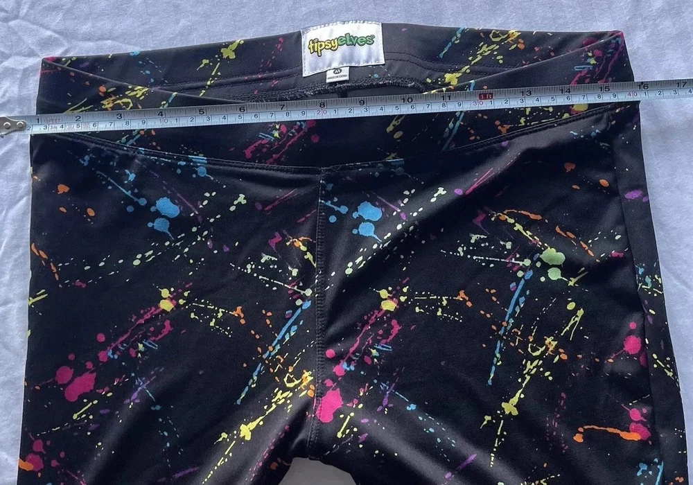 These Tipsy Elves leggings in size Medium for women feature a vibrant splatter paint colorful print, giving off an artistic and eye-catching look. Made of Spandex material, these jegging-style leggings have a vintage design with sequin accents, adding a touch of sparkle. The elastic waist and stretching fabric provide comfort and shaping for various activities like gym training, walking, yoga, or even a party or cocktail event. Perfect for all seasons, these leggings are a fun and stylish addition to any wardrobe.
