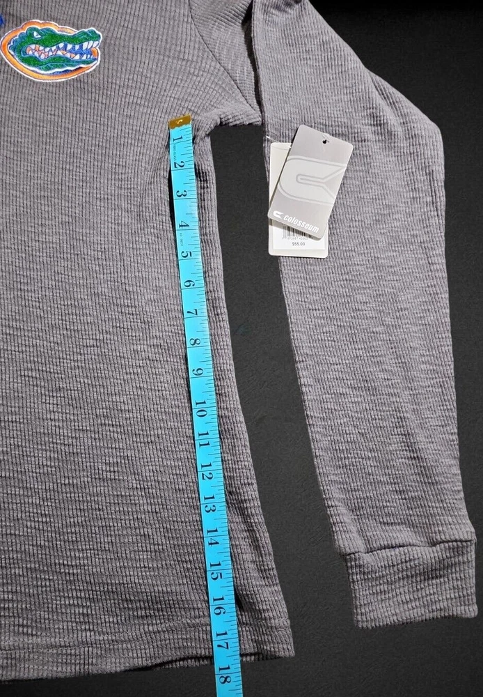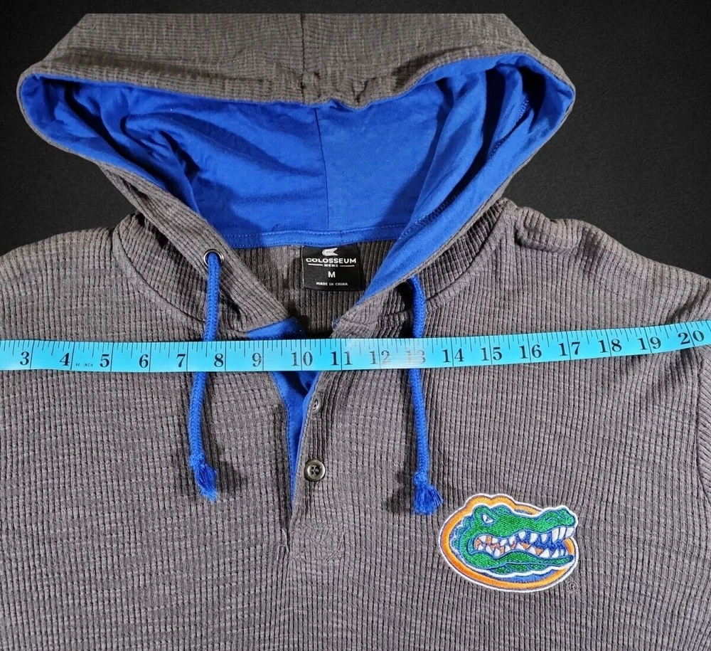 Show your support for the Florida Gators with this Colosseum long sleeve shirt. The gray Henley hoodie is perfect for any fan looking to stay warm and stylish. It features the team's logo and colors, making it a great addition to any collection. The shirt is made for men and is a size medium. It's perfect for basketball games or just everyday wear. Get your hands on this NCAA licensed product today and show your love for the Florida Gators! If you like this item and would like to see more like it, please visit our ebay store. *RETURNS- Customer Satisfaction is important to us. Good communication is crucial for ebay sales. PRIOR to feedback, notify EZ Sales of any concerns using eBay messaging. Item must be returned in its original condition, with tags if applicable. BUYERS are responsible for return postage. Should the wrong item be shipped, EZ Sales will gladly refund the entire amount including return shipping.