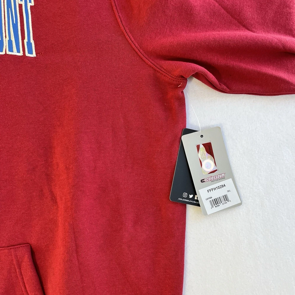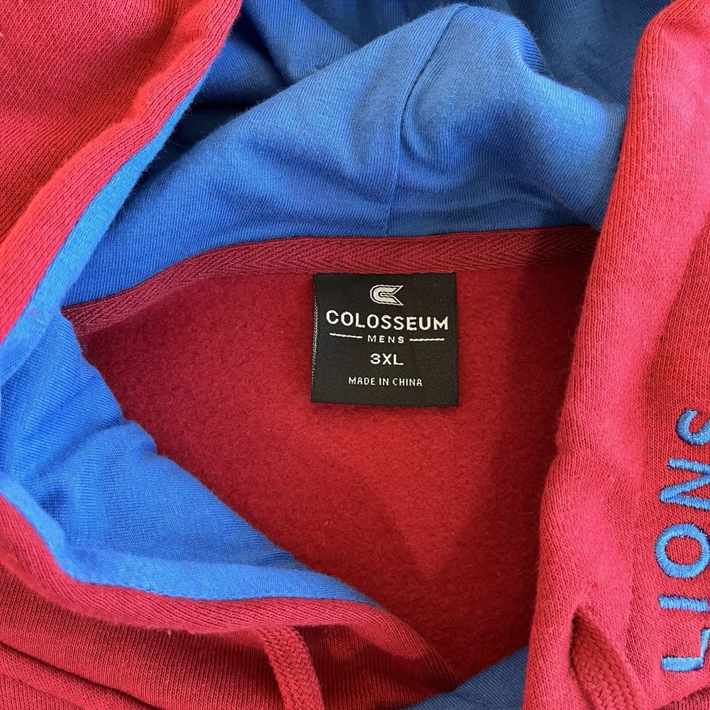 General Notes Color(s) may slightly differ due to monitor settings and lighting. Please check out our other listings as you may be surprised at what you find. Please read the item description and view all the photos. The photos will provide a good representation of the item (see the first note above about colors). Any flaw(s) will have a dedicated photos to show the flaw(s) You may want to compare the measurements of this item to something you already have that fits. If you experience a problem with your item, please contact us so that we can attempt to fix the issue promptly. Colosseum Loyola Marymount Hoodie Sweatshirt Men’s 3XL NWT Company: Colosseum Athletics Condition: New With Tags Color: Red and Blue Style: Big & Tall Fit Sleeves: Long Sleeve Collar: Hoodie w/Drawstrings Material: Cotton Size: 3XL (Extra Extra Extra Large) Sleeve Length: 37” (from nape of neck in line with spine) Shirt Length: 32.5” (from base of collar to bottom of shirt) Shirt Width: 27” (from pit to pit) Wash Instructions: Machine Wash Stitched-on patch lettering "LOYOLA MARYMOUNT and embroidered logo on front Embroidered "LIONS" on left front of Hood Front Kangaroo-style pocket See photos for measurements and shirt details and appearance Measurements are approximate (see photos) Item Description from the Seller Add this hoodie with pockets to your cold weather gear and show your support for the Lions of Loyola Marymount in style. This piece features stitched-on material patch lettering and embroidered logo on the front, while sporting the embroidered "LIONS" on the left front of the hood. This one is New With Tags, so better Buy It Now to save from retail prices. Inv. #0378