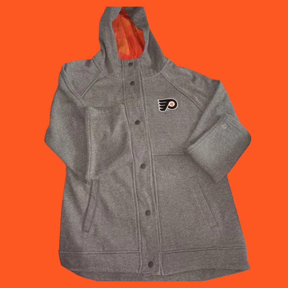Show off your team spirit with this Colosseum Athletics women's jacket featuring the Philadelphia Flyers logo. Made for hockey fans, this gray jacket is perfect for game day or everyday wear. It's a size L and has never been worn, with tags still attached. Represent your favorite NHL team in style with this officially licensed product. Whether you're cheering from the stands or watching from home, this jacket is sure to make you feel like a true fan. Get your hands on this must-have fan apparel and show your support for the Philadelphia Flyers today! I Ship Monday-Friday, If I receive payment for your item(s) by 10 a.m. I will ship it out the same day (I do not ship on Sundays). I only ship to the address linked to your account. I do combine shipping for more than one item ( the buyer must notify me of multiple purchases). If there are any questions or concerns, feel free to contact me.