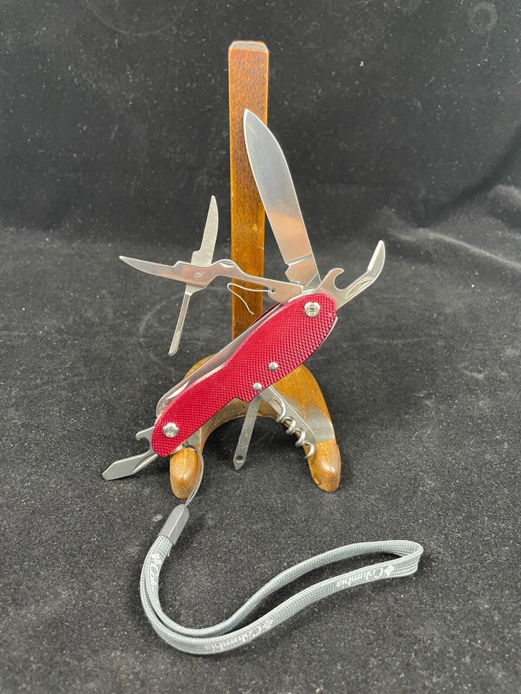 Columbia 10-function pocket tool is the perfect multi-tool for camping and hiking enthusiasts. With 10 different tools including a knife, scissors, medium screwdriver, cork screw, bottle opener, file, phillips screwdriver, and can opener. For Inventory - H19