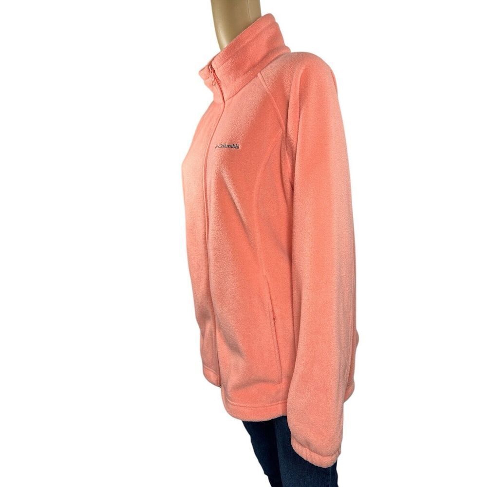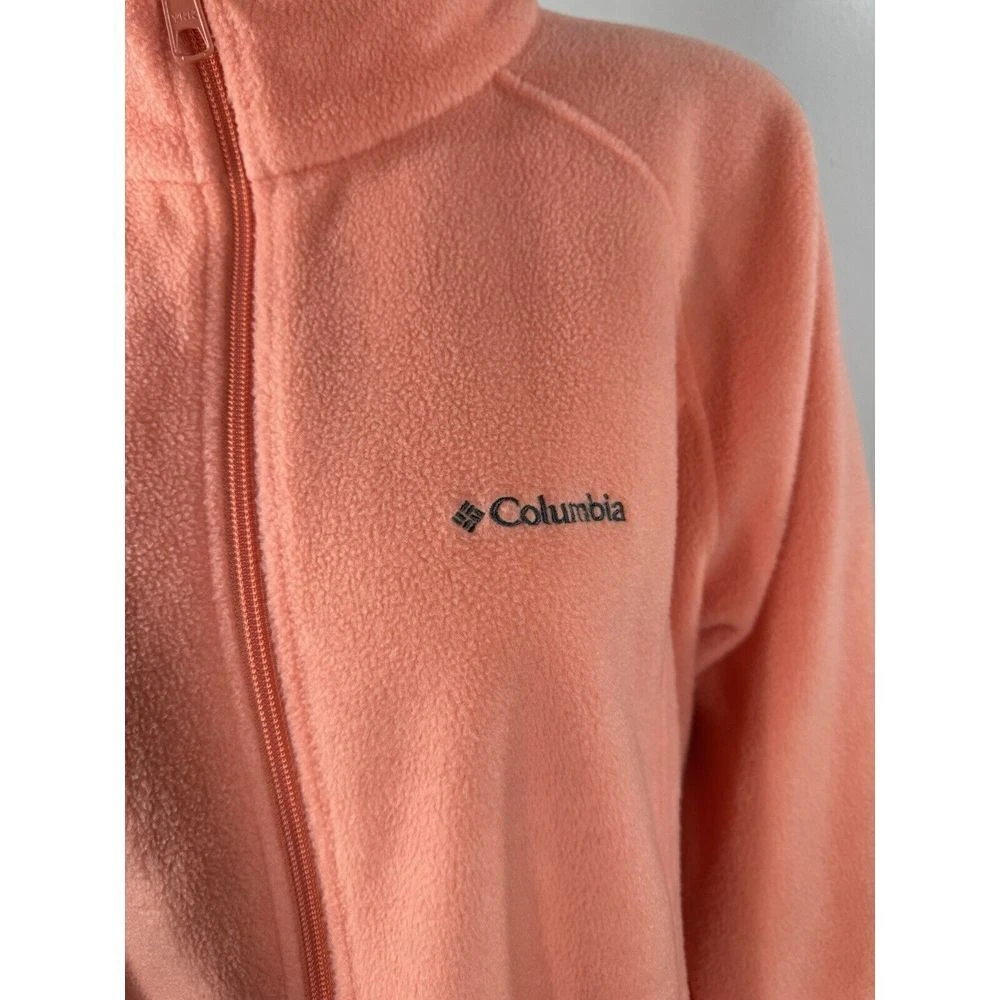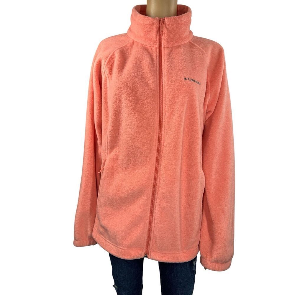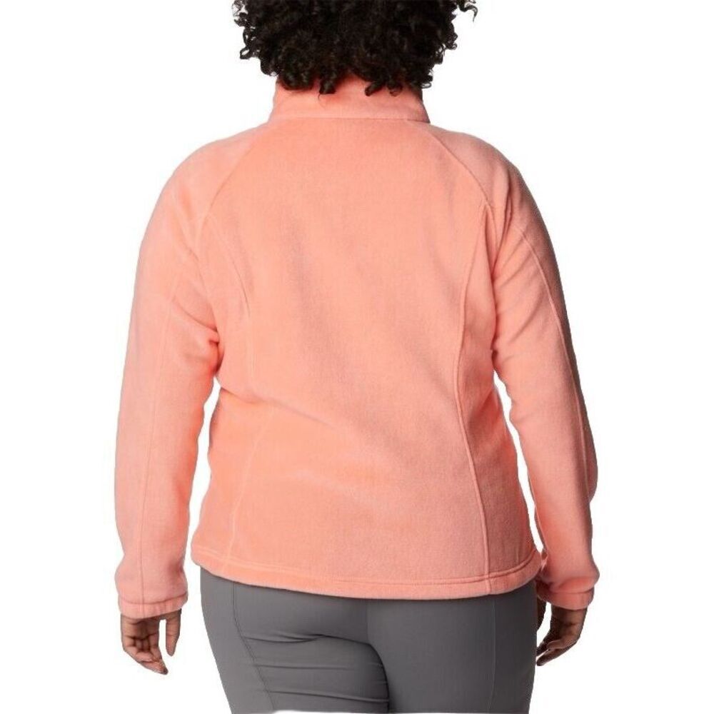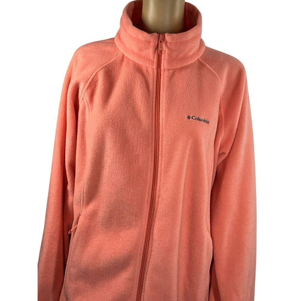 Outer Shell Material: Polyester Model: Benton Springs Theme: Colorful, Outdoor Brand: Columbia Closure: Zip Style: Basic Jacket Color: Orange Insulation Material: Polyester Department: Women Type: Jacket Lining Material: Polyester Features: Full Zip Size: 1X Accents: Logo, Zipper Pattern: Solid Size Type: Plus Fabric Type: Fleece Season: Spring