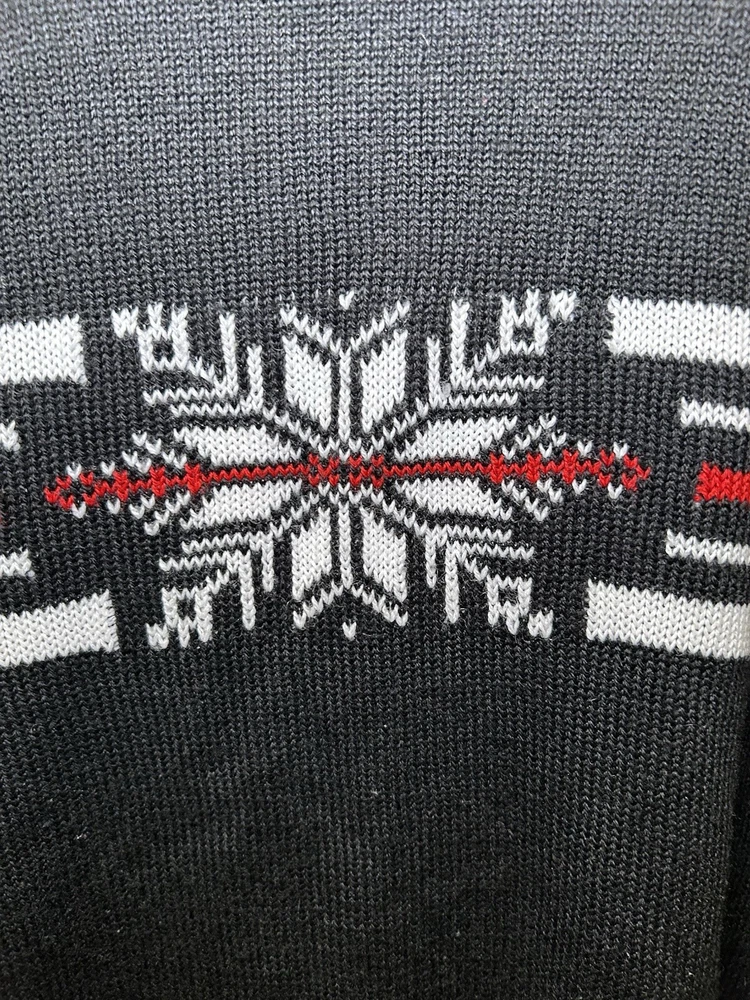 Columbia Christmas Knit Sweater Large Retro Black Red Stripe Snowflake Ski VTG
