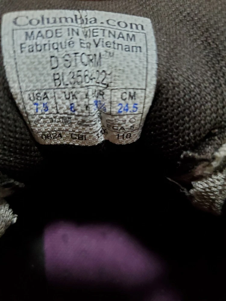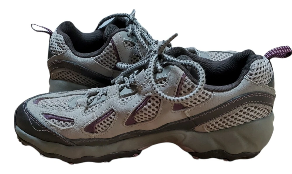 Columbia D Storm Hiking Trail Shoes Womens 7.5 Gray Purple Sneaker BL3564-221. Very Good Pre Owned Condition. One worn spot of on inner heel (see pictures).