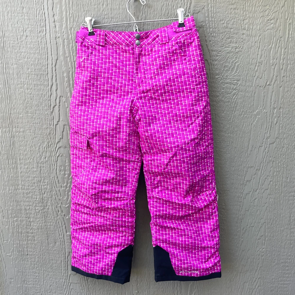 Columbia Girls Youth Medium Omni-Teck Pink Omni-Heat Insulated Ski Snow Pants Condition: Excellent, like new, no signs of wear. Approximate measurements: Side to side at waist: 14.5" Inseam: 25"