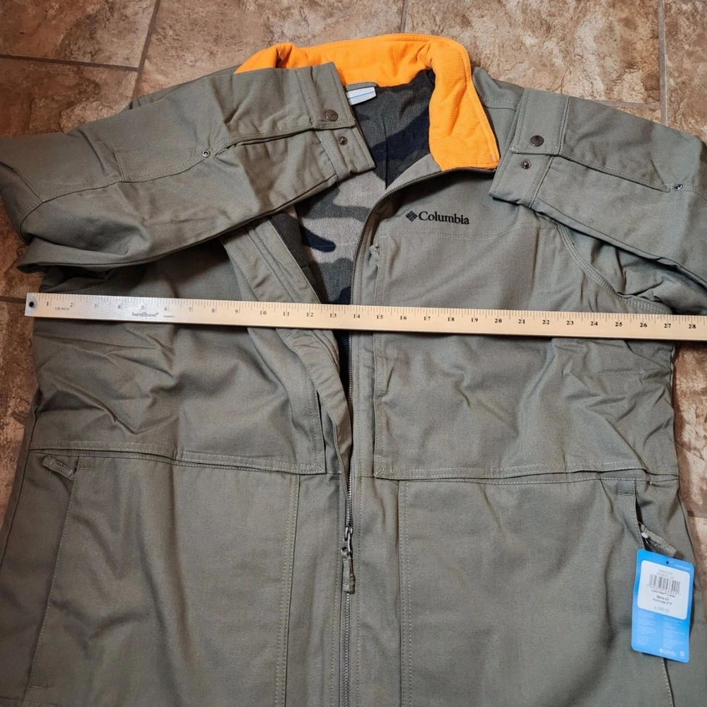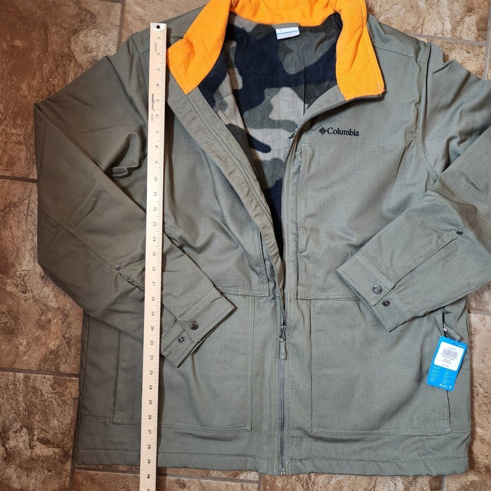 men's size 2X Columbia Loma Vista II Jacket stone green color, orange on the collar, camo print on the inside adjustable sleeve cuffs new condition with tags Please go by the photo and written description (not auto fill) for item details. Any questions, just ask!