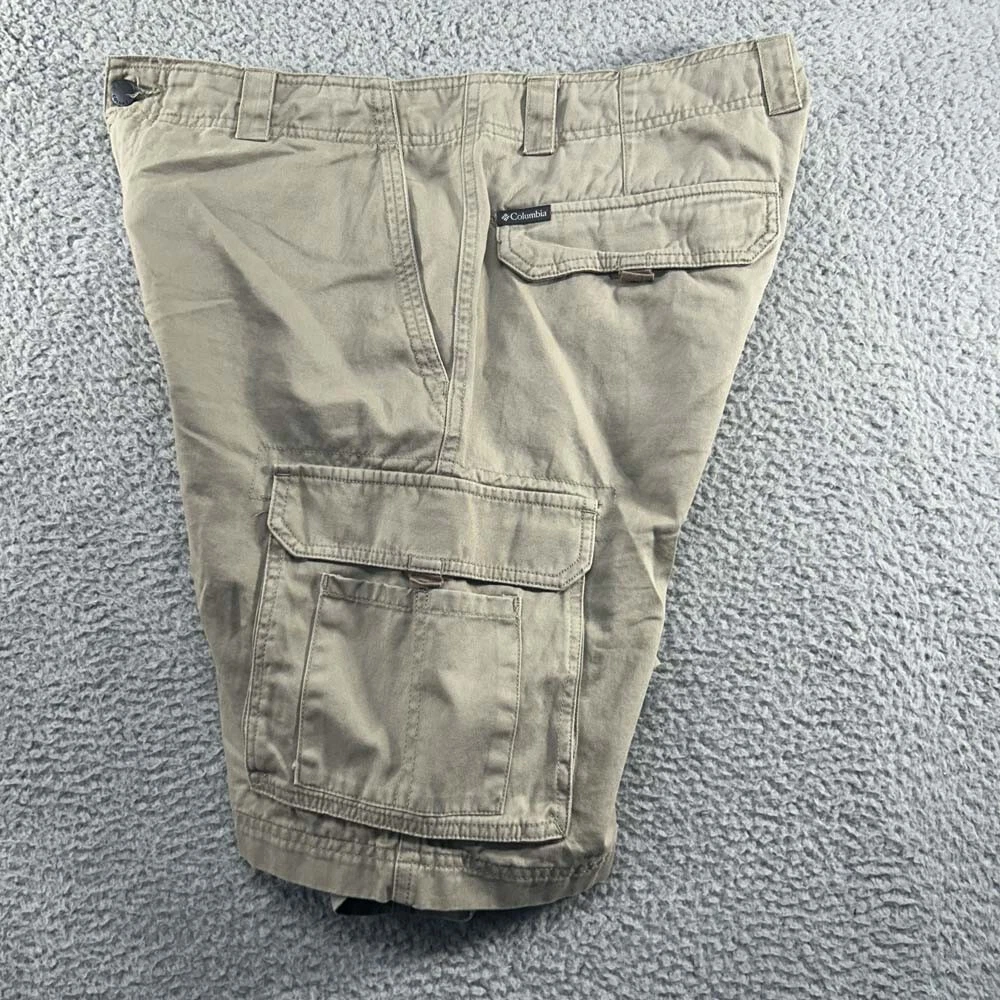 Columbia Men’s 34 Brown Outdoor Hiking Chino Cotton Cargo Shorts 32X19