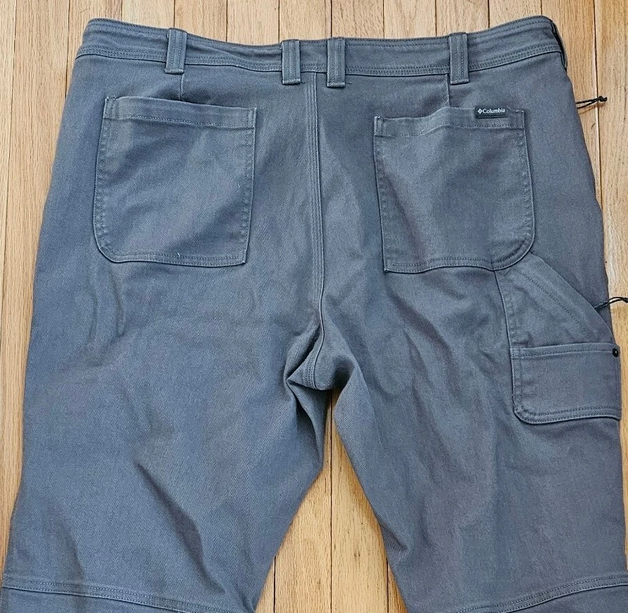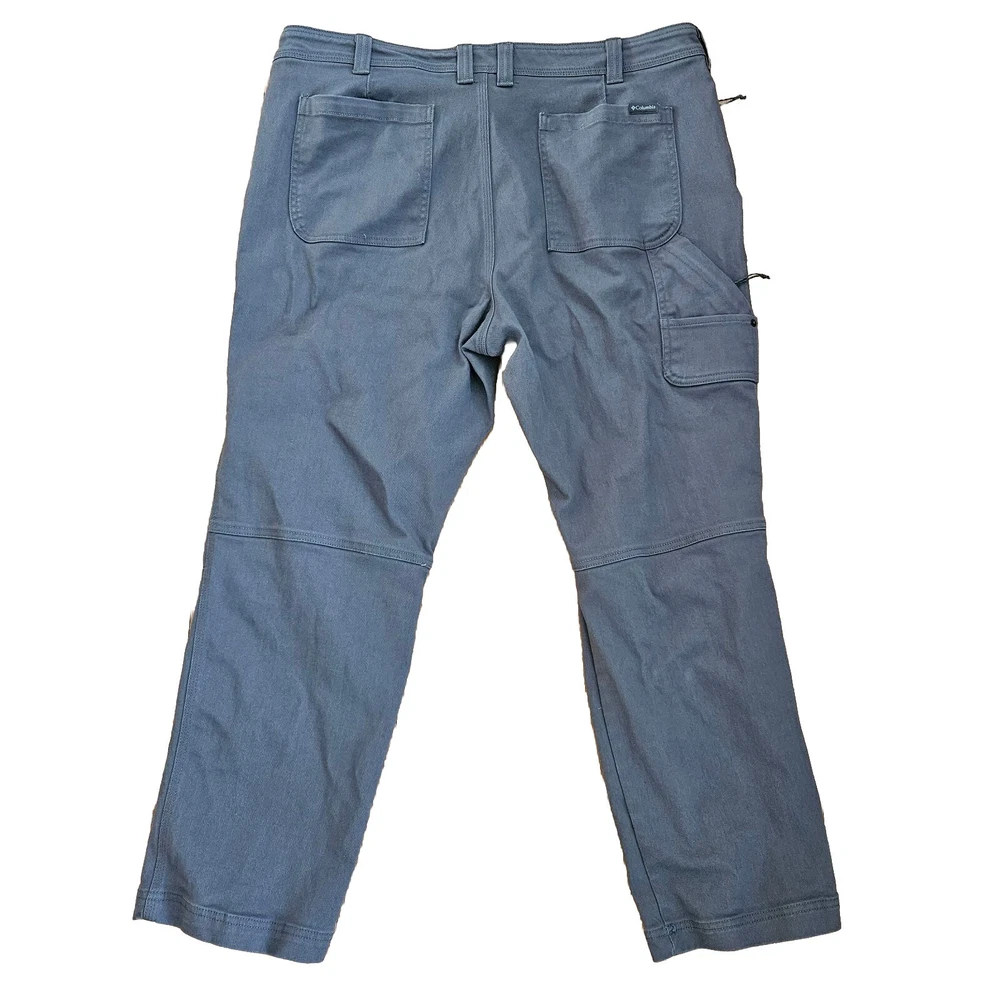 Columbia Men's Carpenter Pants Straight Fit Good pre-owned condition, no flaws or signs of wear 99% cotton, 1% spandex Button and zipper closure Pockets at hips, additional zip pocket at hip on right side, small pocket on outside of left leg, 1 small open pocket and 1 small zip pocket on outside of right leg, back pockets Marked a size 40Wx30L Approximate measurements 21 inches across top of waist 12 1/4 inch rise 28.5 inch inseam