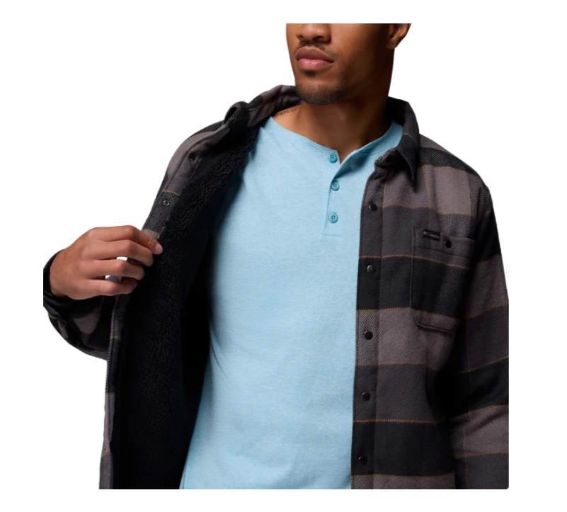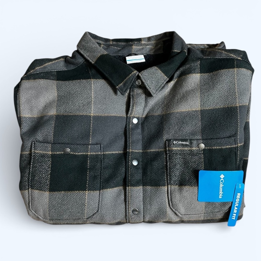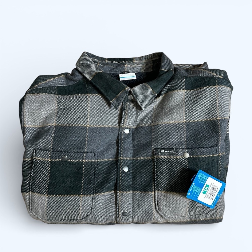 Columbia Men's Flannel Sherpa Lined Shirt Jacket Plaid Black Size L