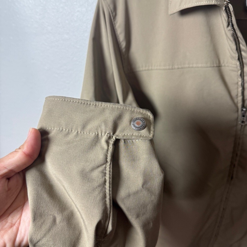 This lightweight Columbia jacket is a must-have for spring or travel—super minimal, easy to layer, and super comfy. Love the zip-up design, side pockets, and snap sleeves for extra convenience. The neutral khaki/taupe color goes with everything, and even with a couple of light spots, it still looks great. Perfect for breezy days or casual outings!