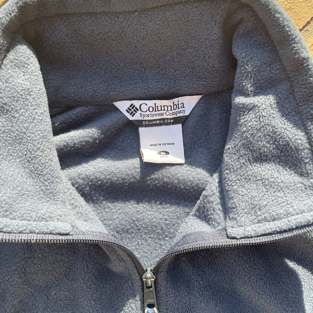 Closure: Zip Occasion: Casual, Travel Outer Shell Material: Polyester Insulation Material: Polyester Size Type: Regular Features: Full Zip, Lightweight, Pockets, Breathable, Soft Fleece Size: M Country/Region of Manufacture: Unknown Personalize: No Performance/Activity: Hiking, Walking, Running & Jogging, Travel, Outdoor Theme: Outdoor Season: Fall, Spring, Winter Model: Columbia Fleece Fit: Regular Vintage: No Color: Blue Garment Care: Machine Washable Pattern: Solid Handmade: No Fabric Type: Fleece Accents: Logo, Zipper Style: Windbreaker Brand: Columbia Department: Men Lining Material: Polyester Type: Jacket