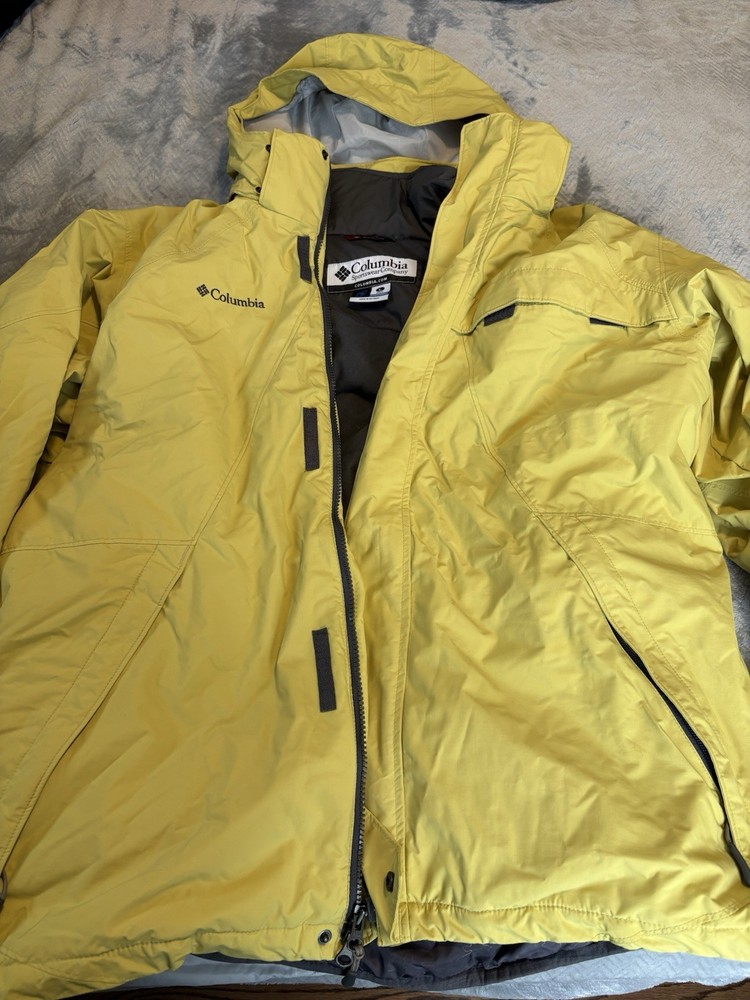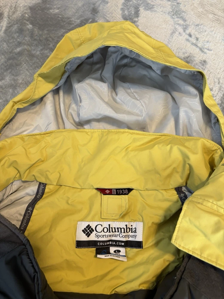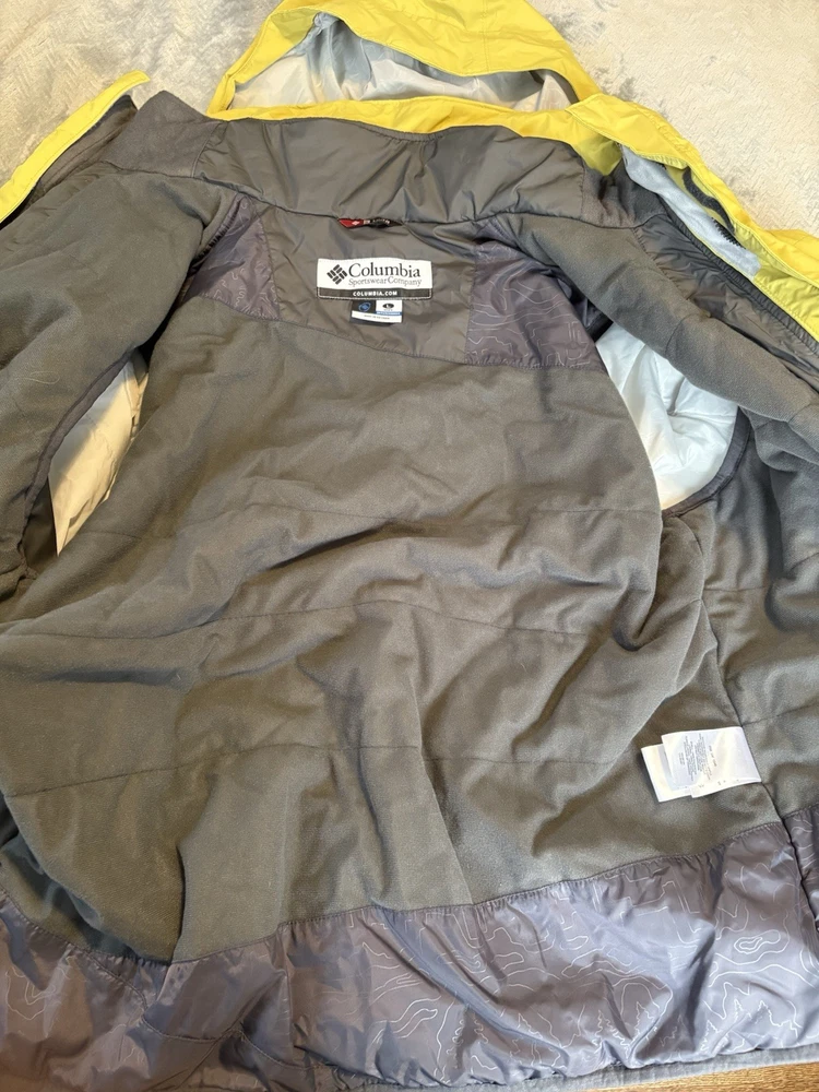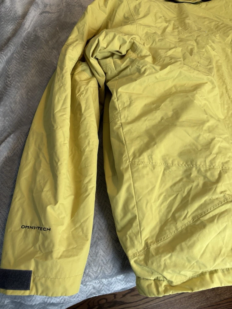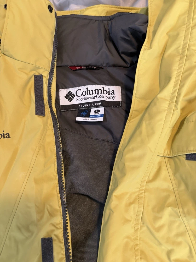Department: Men Features: Interchange Color: Yellow/Gray Model: Columbia Omni tech Product Line: Omni-Tech Size Type: Regular Brand: Columbia Type: Jacket Size: L Style: 3-in-1 Jacket Performance/Activity: Hiking Outer Shell Material: Nylon