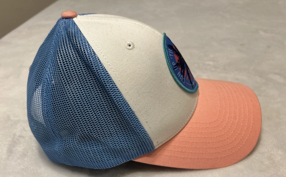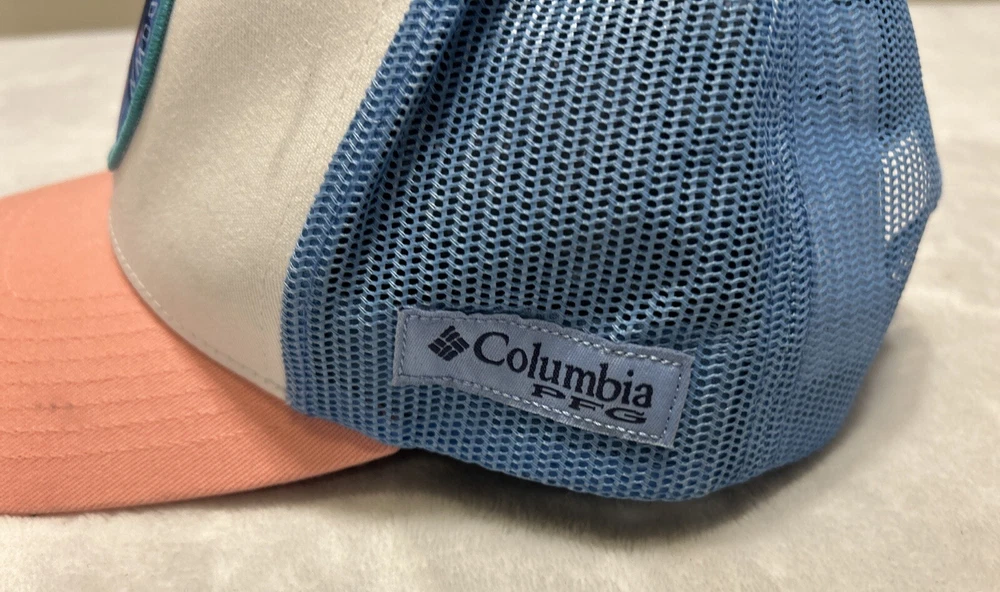 Columbia PFG Hat Women’s SnapBack One Size White Blue Pink Mesh Trucker Tropical
