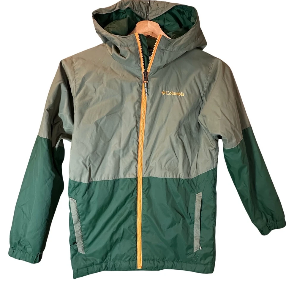 Columbia Sky Canyon Insulated Jacket Green Colorblock Nylon Parka Coat Boys M Medium 10 12 Excellent condition, one tiny spot on back that might come out with treatment, otherwise no issues or notable wear. Size medium/10-12, approximate measurements in photos and below: Pit to pit: ~18" across laid flat; Length: ~25" 3FZQXHKV00360 WB1035 1801481
