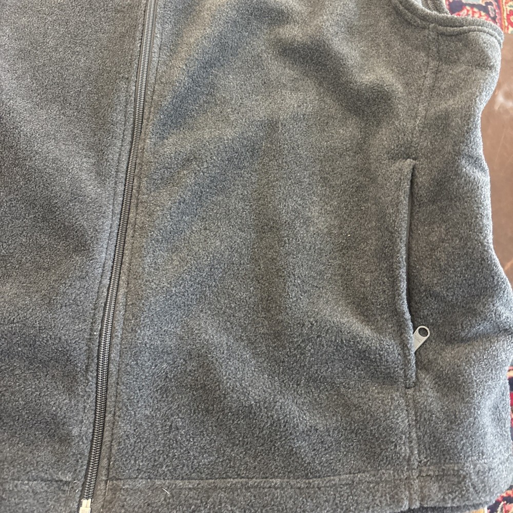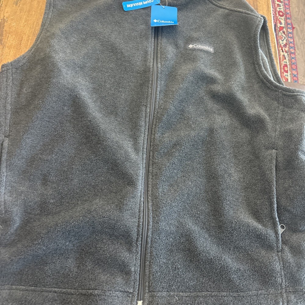 The Columbia Steens Mountain Vest is a men's size XL gray full-zip vest made from polyester fleece, providing warmth with a weight of 300. It is designed for casual occasions with a stand-up collar and logo accents, perfect for outdoor activities like hiking in the winter, fall, or spring seasons. The vest is machine washable and features a regular fit, making it a versatile and practical choice for men looking for a stylish and functional outerwear option.