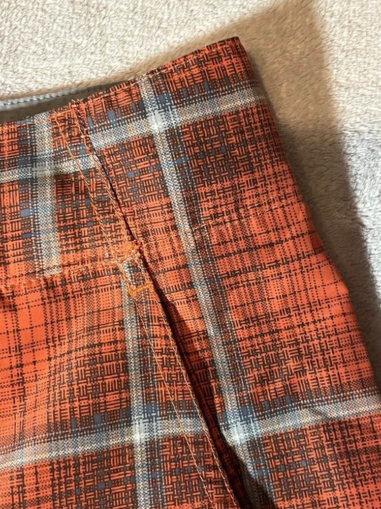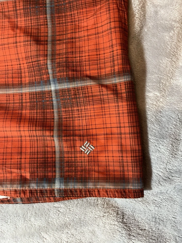 You are buying a pre-owned pair of Columbia Swim Shorts Mens 36 Orange Plaid Omni Shade Sun Protection Board Trunks. These Shorts have lite wear, no major stains or tears, working buttons and drawstring, plenty of life left. Measurements: Size: Men's 36 Waste: 36" Full Length: 21" Inseam: 9" Rise: 10" Ships Free with USPS Ground Advantage, Free Returns. Will Ship within 24 Hours of Payment.