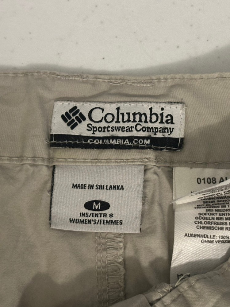 Stay comfortable and stylish with these Columbia Women's Cargo Shorts . Featuring multiple pockets for convenience, an elastic waistband for a secure fit, and a relaxed design, these shorts are perfect for outdoor activities, hiking, or casual wear. Brand : Columbia Condition : Excellent condition Size : M (Medium) Color : Light Khaki Material : 100% Cotton Features : Multiple cargo pockets, elastic waistband, lightweight and breathable Perfect for : Outdoor adventures, casual summer days, hiking Whether you’re hitting the trails or enjoying a sunny day out, these cargo shorts will keep you comfortable and prepared with their practical design.