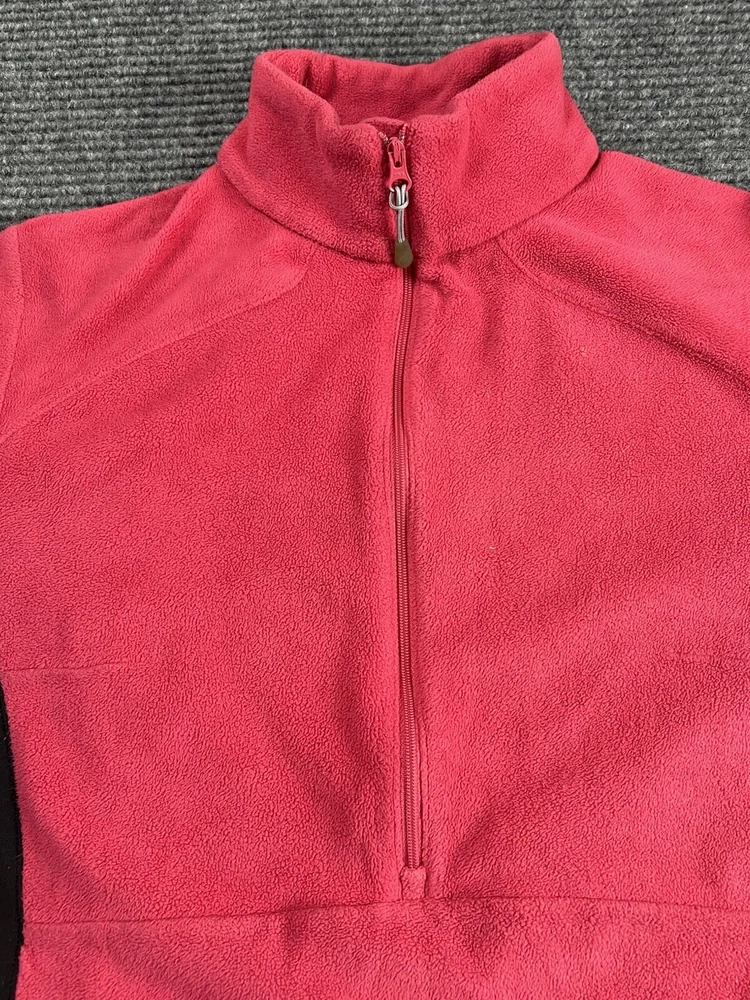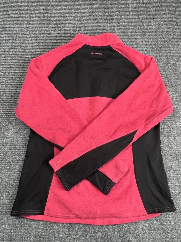 This Columbia Women's Basin Trail Fleece Half Zip Hiking Jacket in size small is perfect for any outdoor activity. The jacket features a solid purple color and is made of polyester fabric with a fleece lining. It has a full zip closure and long sleeves, making it suitable for colder seasons such as fall, winter, and spring. The jacket also includes several features such as a collared neckline, pockets, and the Columbia logo on the zipper. It is machine washable for easy care and maintenance. This jacket is ideal for travel, casual wear, or workwear. Add a touch of color and style to your wardrobe with this classic and functional piece.