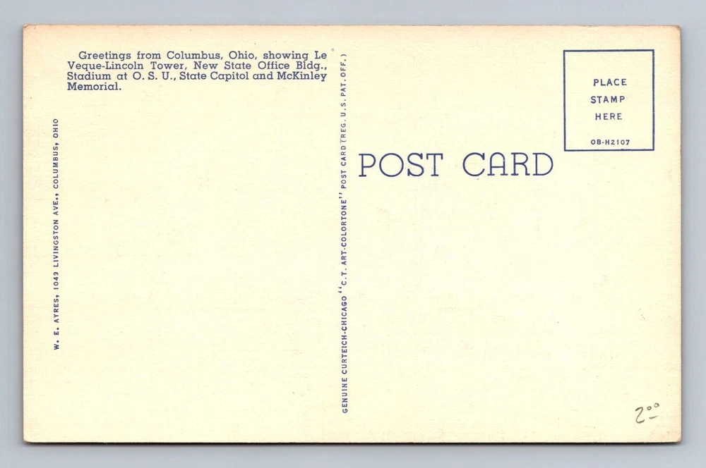 Theme: Cities & Towns City: Columbus Subject: Cities & Towns Era: Vintage Original/Licensed Reprint: Original Postage Condition: Unposted Region: Ohio Unit of Sale: Single Unit Country: USA Country/Region of Manufacture: Unknown Type: Printed (Lithograph)