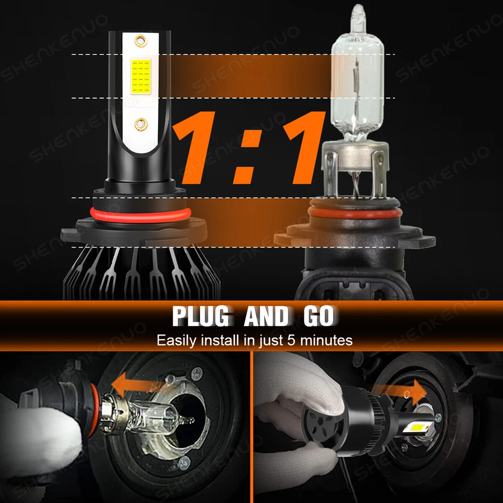 Product Description Product description: light Source Model:COB Chip,super bright Power: 36W Lumen:3800LM Operating voltage:DC9-32V Material: Aluminum PCB and PA66+30% GF Plastic Beam Angle:360° Color Temperature: 6000K Cool White Lifespan:over 30000h Working Temperature: -40-+80 Centigrade Waterproof rate: IP68,IP68 rated water and dust seal,over 30000hrs lifetime Product Performance: 1.Latest COB chip light source, 360 degree no blind zone. 2.Engineering beam pattern design throw more light on road evenly at appropriate angle without foggy light. 3.Xenon white light reflect road paint/signs better to show clearer road situation during night driving. 4.270 degree low beam angle with cut-off line,will not dazzle oncoming traffic. 5.All-in-one heat conduction+high speed mute fan system keep the light bulb in appropriate working temperature. 6.Built-in constant current CPU, instant full brightness without start-up relay. Two-way heat dissipation channel 1.All-in-one aluminum profile as heat conduction system, 360 degree heat radiating. 2.High speed mute fan (12000R/Min),high Air flow for faster cooling rate. Package Included: 6PC LED Light 9005 (High Beam) + 9006 (Low Beam) + 880 (fog light) Install Caution As a safety precaution, make sure that the car has had time to cool down properly before starting the installation process. Put the vehicle into park or make sure it is securely in gear. Make sure to have the ignition turned off and the keys removed. Be careful to avoid burns, especially when turning on or off the vehicles lighting. Be careful to avoid crushing or cutting the bulbs. Also make sure to not touch the bulbs with your fingers, as this will cause blotting. Fully examine the connection of the contact points, ports and the wires as faulty connections can cause lighting problems. Make certain that the end of the bulb does not come in contact with the interior light shield of the headlight when adjusting the bulb. Review Shipping Return Contact us FAQ Review If you like it, your POSITIVE FEEDBACK with 5 STAR RATING is greatly appreciated. If you encounter any problems about anything, please feel free to contact us and we will do our best to assist you to solve the issue. If you are not satisfied in anyway, please feel free to let us know and give us a second chance to correct it before you decide to leave any neutral/negative feedback Or open dispute. Shipping We will ship item locally for US buyers. Usually for US buyers it will take about 5-10 business days to reach. If you don't get it, please contact us firstly, we'll try our best to support you. ---------------------------------------------------------------------------- USPS Standard (ePacket) Shipping, with tracking number. Express (Expedited) Shipping, with tracking number. It depends on your location and local postal service, as well as the weather condition along the shipping. If you need a faster delivery time, you could choose Express (Expedited) Shipping. Return Any concerns, please feel free to let us know, we are happy to provide you assistance before/after buying. Anything caused your inconvenience we will do our best to correct. In case the item is wrong/defective, please do not throw it, just send us pictures (Small video) about the package & item, then we can confirm specific situations and provide you effective assistance. Contact us Your feedback is our encouragement. Please leave five stars positive feedback positive comment and Five-Stars . Contact us if you have any question, Give us a chance to serve you, negative feedback could not solve anything, communication Please! ( NO ) Three stars is LOW star, NO 1,2,3 stars PLEASE! ( YES ) Please give us Five-star! Have Question or Problem?? Step 1 : Contact seller Step 2 : Select the 1st topic: I have a question about using my item or I want to send the seller a message. NO others please! Select a topic: I have a question about using my item or I want to send the seller a message(0)( YES ) YES, THIS ONE!!! We will try our best to solve online if possible, if not, will give correct return address. I did not receive my item(2)( NO ) I need to return my item(1)( NO ) I receive an item that was not as described(1)( NO ) Request to cancel this order(1)( NO ) Step 3 : Describe your question clearly; we will give you the best solution We will help you to track the parcel all the way and give best solution for your order, please do not open case before give us a chance for communication! 1. We have always been trying to provide the best service and reliable product for every customer, However , accident may happen sometimes please contact us solve any issue before leaving a negative feedback. 2. We have a professional and attentive customer support team. Welcome to contact us any time and any issue will be solved by our great communications. We can be reached at ebay message most emails are answered within 24-48 hours. Our normal business hour is Monday to Friday 9AM to 5PM PST . FAQ FREQUENTLY ASKED QUESTIONS OF LED 1.How can I find the right LED bulbs for my vehicle? Search for the vehicle year, make, model and the installation position in our store. If you are not sure about that, please contact us via ebay message with your vehicle year, make and model. Let us know which LED bulb you're interested in, so we can check the fitment and get back to you as soon as possible. 2.Will this bulb fit my vehicle? We can match almost any vehicle to one of our bulb sizes. eBay only lets us include 3,000 vehicle fitments per listing, but if your vehicle does not show up on the compatibility table at the top of our listings, welcome you to contact us for free consulation before purchasing a product. 3.I bought the wrong items/ the items were not compatible with my vehicle. Please contact us via ebay message to get quick support. 4.Neither side lighting up? Both sides flicker, flash, or work inconsistantly. Check the headlight fuses, and then check the ballast plugs to insure corre