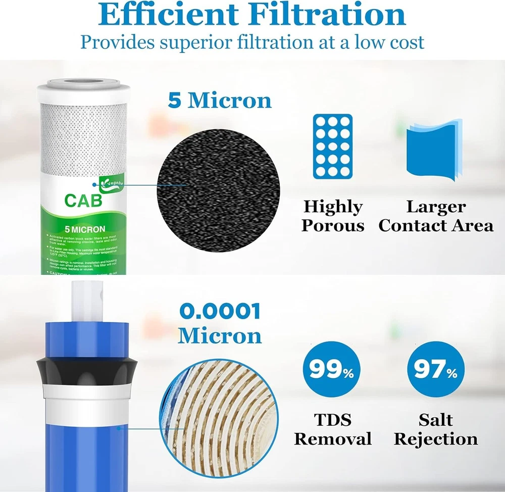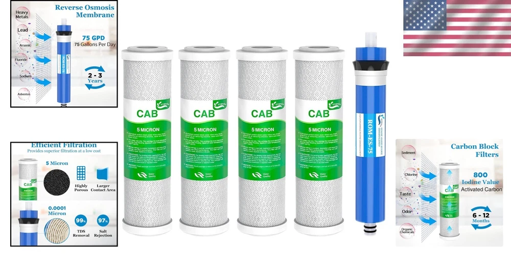 Combo Pack FX12P & FX12M RO Water Filters - 4 Carbon + 1 Membrane, NSF Certified ‹ › ‹ › ‹ › ‹ › ‹ › ‹ › ‹ › ‹ › Combo Pack FX12P & FX12M RO Water Filters Elevate your drinking water experience with our Combo Pack FX12P & FX12M. Featuring 4 Carbon Block Filters and 1 RO Membrane, these NSF Certified filters ensure that the water you consume is safe, pure, and delicious. Key Features: Compatibility: Fits most standard under-sink RO water filter systems including GE GXRM10 series, APEC ESSENCE & ULTIMATE Series, iSpring and many more. Inclusions: 4 x Carbon Block Filters and 1 x RO Membrane Filter. Carbon Block Filter life of about 6-12 months, and RO Membrane life of about 2-3 years. 5 Micron Carbon Block Filters: Made with 800 iodine value activated carbon, these filters are NSF certified to reduce fine sediment, chlorine, odor, and industrial chemicals. 75 GPD RO Membrane: Produces 75 gallons of purified water per day, removing 99% of dissolved solids including lead, heavy metals, and more. Efficient Filtration: 5-micron high porosity Carbon Block Filters and 0.0001 micron RO Membrane offer superior filtration capabilities at a budget-friendly price. Why Choose Our RO Water Filters? With health and hydration at the forefront, our Combo Pack delivers unmatched quality and efficiency. Each filter is crafted from food-grade materials, ensuring safety with every sip. It’s the ideal solution for families who prioritize clean, filtered water without the hassle of frequent replacements. Specifications: Carbon Block Filters - Dimensions: 10” x 2.5”, Flow Rate: 5 GPM, Service Life: 6-12 months. RO Membrane - Dimensions: 11.75” x 1.75”, Flow Rate: 75 gallons per day, Service Life: 2-3 years. Note: Please flush Carbon Block Filters with clean water for five minutes before initial use. You may receive a product with an old label while we transition to new packaging. Worry-Free Purchase: Our dedicated team is here to provide you with worry-free service and unbeatable solutions for all your water purification needs. Join the numerous satisfied customers who trust our filters for pure water every day. Order your Combo Pack FX12P & FX12M today! Shipping Free & Fast Shipping - We offer free shipping to most of the USA with a normal delivery time of 3-7 days. However, due to the current situation, additional delivery time (up to 3 weeks) may be required for some items. Alternative Carriers - We may use alternative carriers (e.g. USPS, FedEx, UPS, etc.) to ensure your package arrives safely and on time. Due to the use of multiple carriers, we are unable to provide a tracking number automatically. Handling Time - Orders are processed and shipped within 1-2 business days of receiving cleared payment. Shipping Restrictions - Shipping to Alaska, Hawaii, Puerto Rico, Guam, and other US territories may incur shipping charges or delivery restrictions. Please contact us before ordering, or your order can be refunded/cancelled. State Restrictions - There may be restrictions based on your state of purchase. For example, certain items may not be shipped to California due to state regulations. Contact for Tracking Updates - If you require tracking updates or have any concerns about the delivery of your order, please feel free to contact us, and we will be happy to assist you. Return 30-Day Hassle-Free Returns - We want you to be completely satisfied with your purchase. If you are not, you can return the item within 30 days of receiving it for a full refund or exchange. Easy Return Process - To start a return, simply contact us and we will provide you with a prepaid return shipping label and detailed instructions. Restocking Fee - There are no restocking fees for returns. However, the buyer is responsible for return shipping costs if the return is not due to a seller's error. Refund Processing Time - Refunds will be processed within 5 business days of receiving the returned item in its original condition. Payment We accept all major credit cards, PayPal, and Apple Pay for your convenience. Your payment information is secure and encrypted to ensure a safe and seamless transaction. Please complete your payment within 3 days of purchase to avoid any delays in shipping. Feedback Your feedback is extremely important to us. We strive to provide the best products and customer service possible. If you are satisfied with your purchase, please take a moment to leave us a positive review. If you have any concerns or issues with your order, please contact us before leaving negative feedback. We are committed to resolving any problems and ensuring your satisfaction. Contact Us If you have any questions or concerns, please feel free to reach out to our customer support team. You can contact us through the eBay messaging system. We are available Monday to Friday, 9:00 am to 5:00 pm EST, and we will do our best to respond to your inquiry within 24 hours. Buy it now and enjoy a pleasant shopping experience! UPC: Not Set Unit Quantity: 1 Compatible Model: For GE GXRM10RBL,GXRM10G,For GE GXRM10G,For GE GXRV10ABL,For GE PNRV12,For APEC ROES-50,For APEC ROES-75,For APEC ROES-PH75,For APEC ROES-PHUV75,For APEC ROES-UV75,For APEC RO-45,For APEC RO-90,For APEC RO-PH90,For APEC RO-PERM,For APEC RO-PUMP,For APEC RO-Hi,For APEC WFS-1000,For Express Water RO5DX,For Express Water RO5DXG,For Express Water ROALK5D,For iSpring,For PureDrop,For Max Water 5-stage,For Proline Plus Material: Carbon Fiber,Coconut Shell Carbon Compatible Brand: Not Set Suitable For: Commercial,Household Filtration Method: Carbon Block,Reverse Osmosis Brand: Unbranded Model: Water Filter Replacement Type: Water Filter Item Width: Not Set Item Depth: 2.5 in Item Height: Not Set Country/Region of Manufacture: Not Set Manufacturer Warranty: Not Set Item Weight: 4.02 lb Contaminant Removal: Chlorine Taste & Odor Capacity: 75 gal Color: Black Number in Pack: 5 Unit Type: Unit MPN: Not Set Number of Filtration Stages: 5-Stages