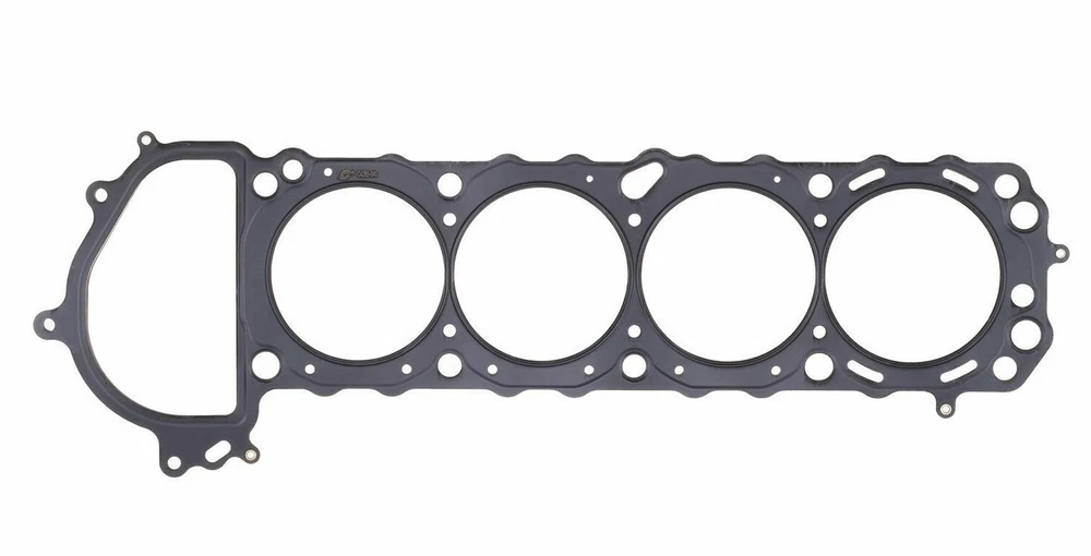 COMETIC NISSAN KA24DE .040" MLS CYLINDER HEAD GASKET, 90MM BORE Part Number: C4285-040 Fitment: 1991-1998 Nissan 240SX 1998-2004 Nissan Frontier 2000-2004 Nissan Xterra KA24 KA24DE 240SX Nissan KA24DE 91-98 DOHC 16V 2.4L Material: MLS Compressed Thickness: .040 Bore Shape: Round Bore Size (MM): 90 # of layers: 3 Orientation: None Features: Provide maximum sealing performance for today`s high output engines and require no sealants Ideal for aluminum heads to aluminum blocks and aluminum heads to cast iron blocks withstanding the shearing force created by the two materials. No need to re-torque, the embossing design of the MLS gasket promotes an even clamp load across the sealing surface allowing for measurable reduced bore distortion Cometic MLS Gaskets are comprized of multiple layers of stainless steel due to it`s increased strength, ability to rebound and resistance to corrosion. The outer layers of the gaskets are embossed and coated on both sides with Viton - a flouroelastomer rubber based material that is heat resistant to 250°C /482ºF. Viton is designed to meet the demands of a variety of harsh sealing environments, load conditions, and surface finishes. The center or shim layer is uncoated stainless steel layer which can be varied to accommodate multiple thickness requirements.
