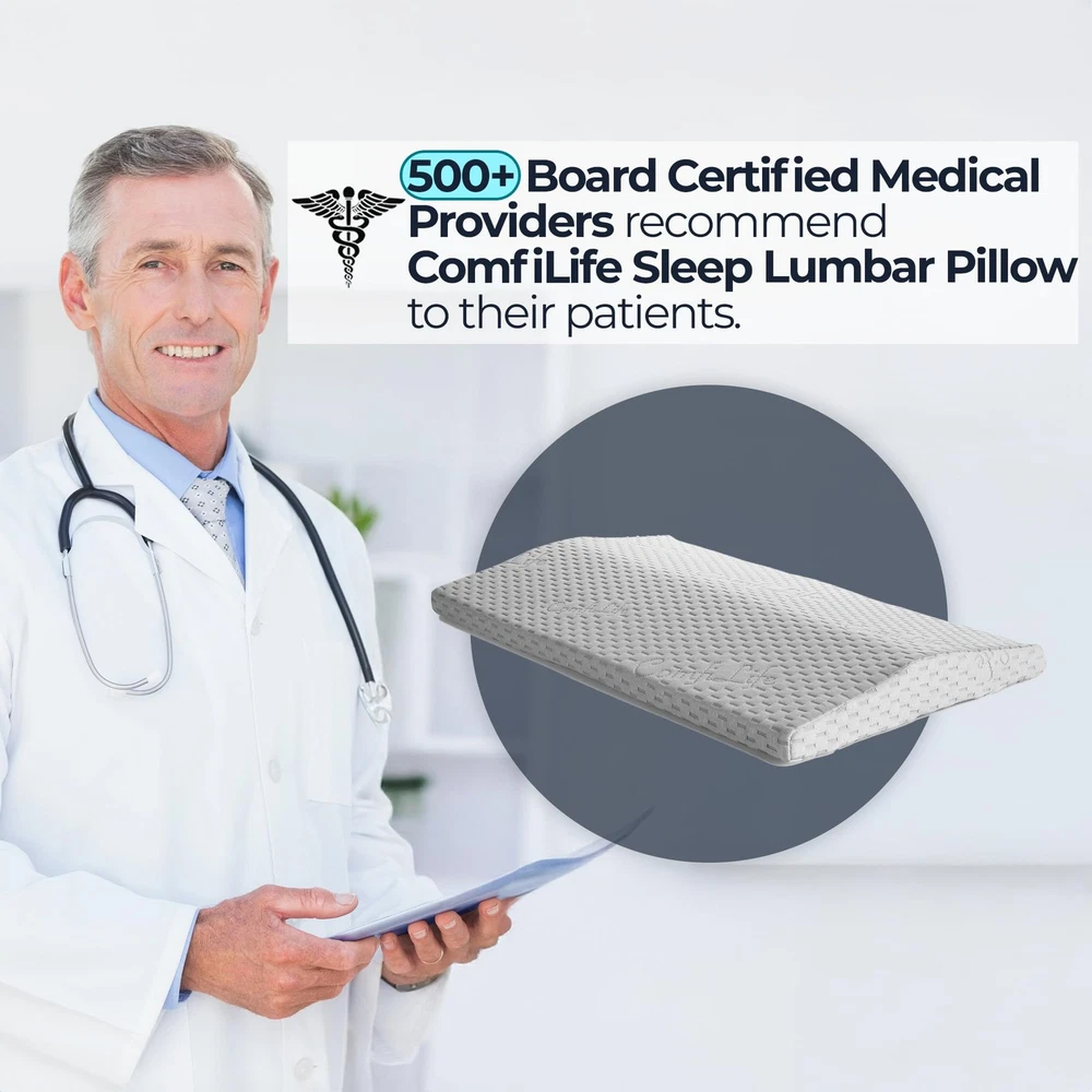 Sleep Lumbar Support Pillow for Back Pain Relief - Ergonomically designed lumbar pillow for bed effectively supports lower back for side, back and stomach sleepers. It helps alleviate lower back pain and provides optimal spinal alignment at night. Multi-Functional Bed Support Pillow for Back, Legs and Knees - ComfiLife lower back support pillow can also be used under knees, under legs, under feet or as a leg elevation bolster to provide comfort and effective pain relief where you need it. Bed support pillow for back and side sleepers to provide lower back pain, hip pain, leg pain and joint pain relief. Medium-Soft Memory Foam - ComfiLife sleep lumbar support pillow provides long lasting comfort for hours. Provides optimal support and spinal alignment Enhanced Lower Back Pain Pillow for Sleeping: Our lumbar pillow for sleeping provides optimum support for your waist, helping to maintain spinal alignment, making it an essential back pillow for sleeping. Breathable Easy Clean Cover - Breathable soft cover provides ultimate comfort and prevents this lower back pain pillow for sleeping from overheating. It is machine washable for easy cleaning. Personalized Comfort - We want to emphasize that while our pillow is designed to suit a wide range of preferences and needs, it might not be the ideal fit for all body types or comfort preferences. This is a common characteristic of products designed for ergonomic support and comfort. We encourage giving the pillow a fair trial period to adapt to its feel and support. Firmness & Support Disclaimer – Please note: this lumbar support pillow is made of medium-density memory foam and is designed for soft, cushioned support — not firm orthopedic correction. It offers mild elevation and is best suited for back or side sleepers looking for gentle lower back comfort. Fit & Positioning – Place under the lower back to unload the lumbar spine. For side sleepers: place lengthwise under the waist; rotate to fine-tune height. Comfort varies by body weight and mattress softness. Dimensions: L 27.5" x W 15.5" x H 2.5" Comfort Scope – Designed for gentle, medium-soft cushioning and mild elevation. Not a rigid orthopedic brace Positioning Tips – Back sleepers - place directly under the lower back to create a gentle arch. Side sleepers - place the pillow lengthwise under the waist/side to fill the gap; fine-tune comfort by sliding it slightly up or down your torso and adjusting how much of the pillow sits under you.