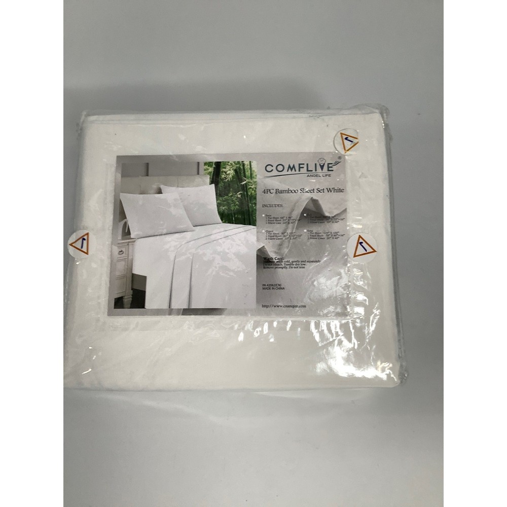 Comflive Angel life 4 piece bamboo sheet set. White. Full set includes one flat sheet 84 x 96 one fitted sheet 54 x 75+16. Two pillowcases 20 x 30. Machine wash cold, gently, and separately do not bleach, tumble, dry, low, remove promptly. B138