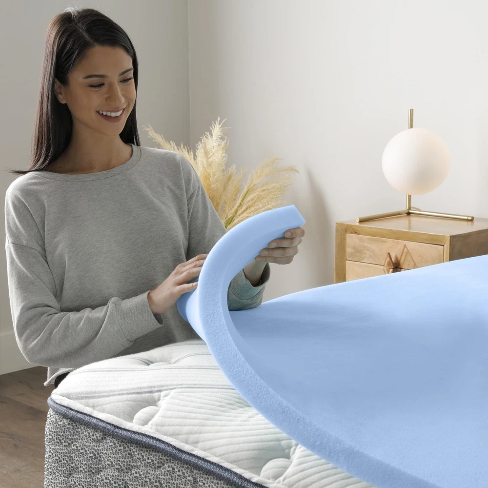 Sleep like you’ve never slept before on this mattress topper from . As part of the family of comfort solutions, this Comfort Cool memory foam topper can improve any night’s rest on top of virtually any mattress. With a breathable foam design, this mattress pad will help maintain temperature regulation while you rest as it adjust to your body’s shape, providing a sleeping surface that won’t overheat and cradles your curves for perfect cooling comfort all night long. Breathable memory foam designed to maintain temperature regulation while you sleep Adjusts and conforms to the individual contours of the body for enhanced comfort and pressure infusion technology provides added support to any sleep surface Extends the life of your mattress Made in the USA