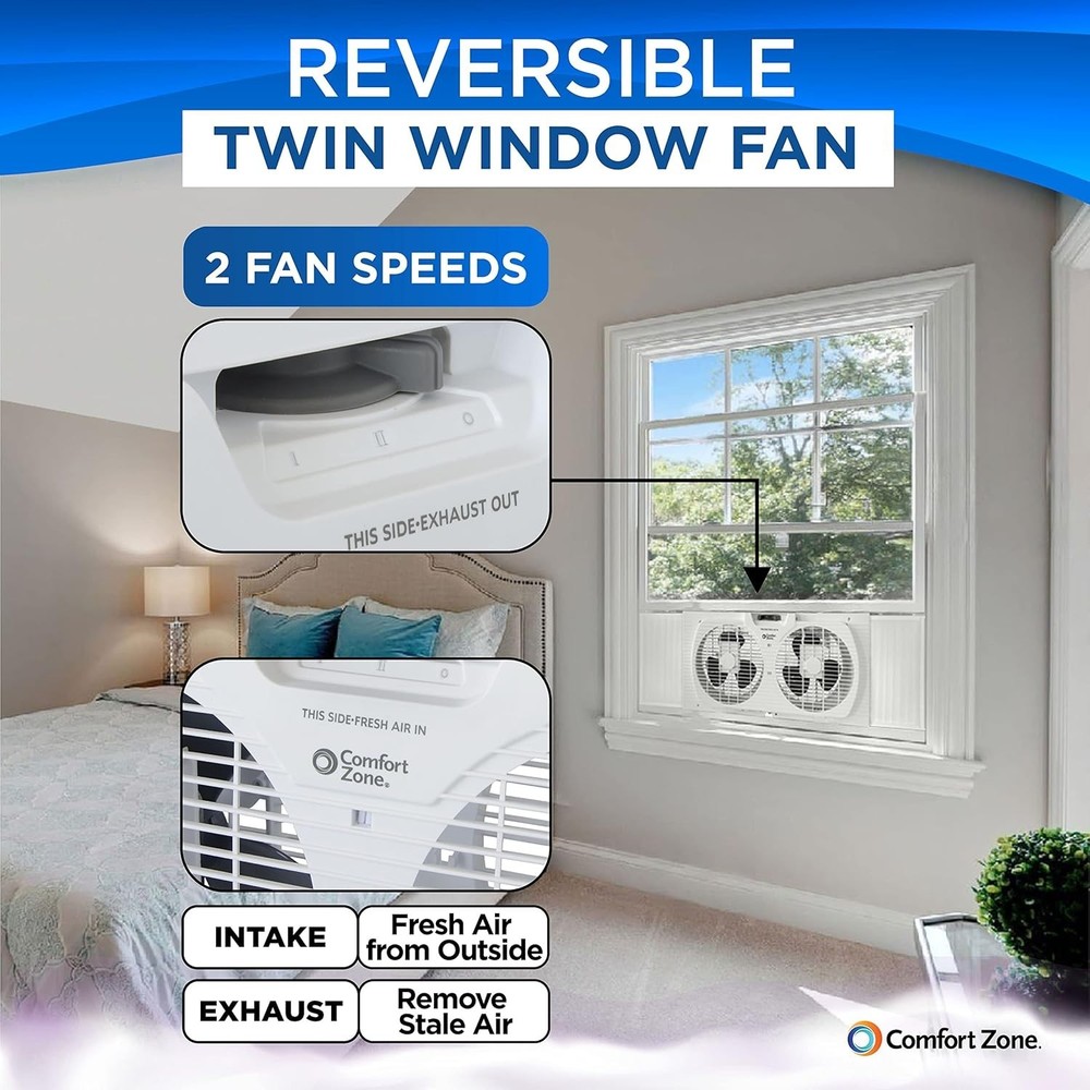 Comfort Zone CZ319WT 9" Twin Window Fan with Reversible Airflow Control,