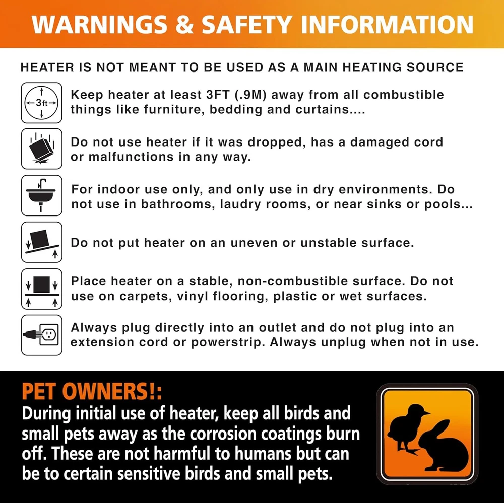 Comfort Zone Ceiling Mounted Space Heater, 90 Degree Adjustable Tilt, Black Product Details Brand: Comfort Zone Special Feature: Cool Touch Exterior, Portable, Halogen lamps (type G9, 120V., 60Hz., 25W), Overheat Protection, Adjustable Tilt Head Color: Black Form Factor: Wall Mount Indoor/Outdoor Usage: Indoor Product Dimensions: 5.25"D x 26.5"W x 14.25"H Recommended Uses For Product: Workshops Mounting Type: Ceiling Mount Room Type: Garage Burner type: Halogen Fuel Type: Electric Voltage: 120 Volts Max Temperature Setting: 90 Degrees Fahrenheit Item Weight: 8 pounds Manufacturer: Mr. Brands, LLC. Country of Origin: China Item model number: CZQTV5M Care instructions: Hand Wash Assembly required: No Number of pieces: 1 Batteries required: No Included Components: Product Manual, Halogen lamps (Type G9, 120V., 60Hz., 25W) Special Feature: Cool Touch Exterior, Portable, Halogen lamps (type G9, 120V., 60Hz., 25W), Overheat Protection, Adjustable Tilt Head Cool Touch Exterior, Portable, Halogen lamps (type G9, 120V., 60Hz., 25W), Overheat Protection, Adjustable Tilt HeadCool Touch Exterior, Portable, Halogen lamps (type G9, 120V., 60Hz., 25W), Overheat Protection, Adjustable Tilt Head See more Power SourceHeating Method: Corded ElectricRadiant Item WeightHeat Output: 8 Pounds1500 Watts EFFICIENT RADIANT HEATING: This radiant quartz heater utilizes two high-quality quartz bulbs to emit heat that is similar to the warmth of the sun. The radiant heat is directed towards nearby objects, delivering gentle and efficient warmth to living spaces, workshops, and garages. With its effective heating mechanism, this heater is an ideal choice for creating a comfortable environment. Voltage: 120.0 volts. ADJUSTABLE ANGLE FOR CUSTOMIZED HEAT: This quartz heater offers the flexibility to adjust its angle up to 90 degrees, allowing you to precisely direct the warmth to specific areas in your space. Whether you want to focus the heat towards a particular spot or cover a larger area, the adjustable angle feature ensures targeted warmth exactly where it's needed. EFFICIENT CEILING MOUNT: With its space-saving design, this radiant heater is specifically engineered for easy ceiling installation. By mounting it on the ceiling, you can optimize your floor space in crowded areas such as garages, workshops, or storage areas, ensuring maximum efficiency and convenience. BUILT-IN HALOGEN LIGHT: Enhancing its functionality, this radiant heater comes with a convenient built-in halogen light. Whether you're working on a project or need better visibility in dimly lit areas, the integrated halogen light provides ample illumination, allowing you to easily view items on your worktable and read instructions or fine print with clarity. Halogen lamps (use only type G9, 120V., 60Hz., 25W) are available at most hardware and home center stores. ENHANCED SAFETY FEATURES: The radiant heater is equipped with intelligent safety features to provide you with peace of mind. A sturdy metal safety grill effectively prevents the bulbs from coming into contact with other items, ensuring safe operation. Additionally, an integrated sensor automatically shuts off the unit if it detects overheating, protecting against potential hazards and promoting a safe environment.
