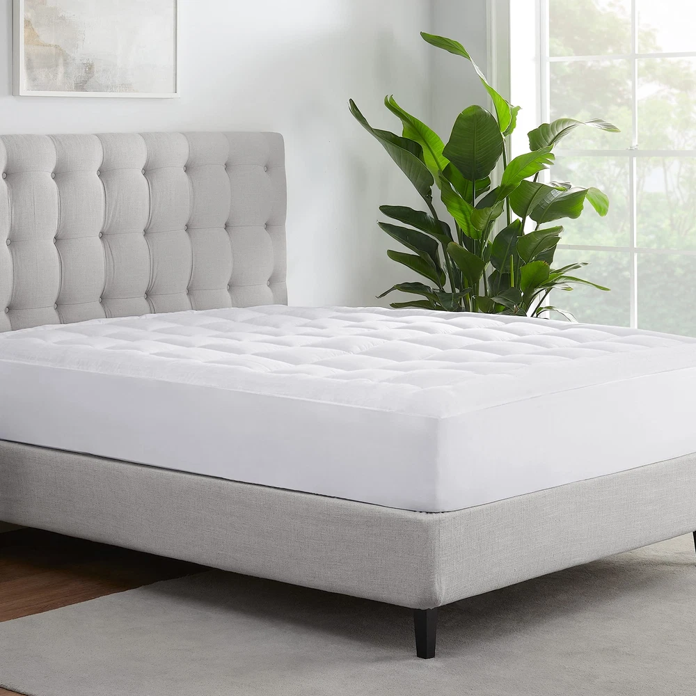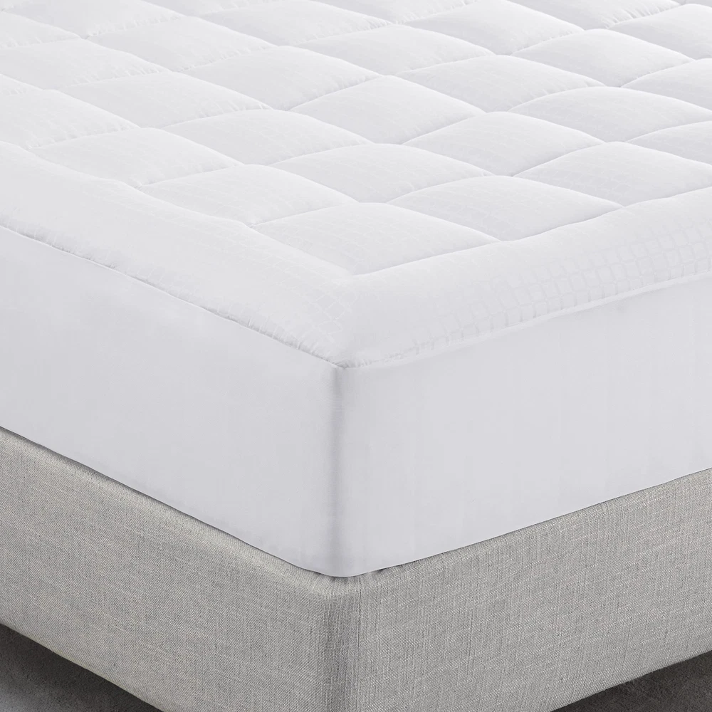 Stay comfy and safe with the ComfortSure Dobby Check Quilted Top Mattress Cover. 's ComfortSure mattress cover offers you the ultimate luxury comfort every night with 100% cotton material to keep your bed cleaner, fresher, safer and more durable! Secure your good night's rest with the 18" deep elastic simple fit skirt featuring a deep pocket design that easily fits any mattress and prevents your mattress cover from shifting during your sleep. Fits like a glove to never slide no matter how you twist and turn in bed. A champion of comfort for all, has pioneered sleep innovation for more than 90 years, bringing quality products to more than 150 countries worldwide. Every bed across the portfolio is designed to provide superior comfort, including the award-winning Perfect Sleeper and iComfort collections. PERFECT SIZE & SLEEP - Our mattress cover is super lofty and supportive. The down alternative mattress pad will deliver ultimate softness and comfort to you every single night. Queen size measures 60” x 80” ULTIMATE SOFTNESS - 's ComfortSure mattress pad is made from 100% 300 thread count cotton dobby check with 49gsm polyester fill. This filling provides the ultimate softness, creating a cozy and breathable environment for the most relaxing sleep NO SLIP DESIGN - Our 18" deep fabric pocket design effortlessly stretches to grip any mattress and prevent your mattress cover from shifting during your sleep. Fits like a glove to never slide no matter how much you twist and turn WORRY FREE CARE - Machine washable for easier maintenance and convenience! Machine wash mattress cover separately in a cold, gentle cycle. Only non-chlorine bleach when needed. Tumble dry on low. Do not iron. Use large front loading washer and dryer - A champion of comfort for all, has pioneered sleep innovation for more than 90 years in more than 150 countries. Every bed is designed to provide superior comfort, including the award-winning Perfect Sleeper and iComfort collections