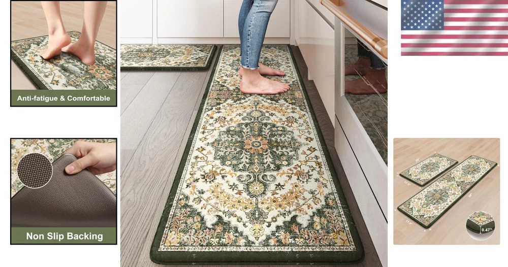 Comfortable Non-Slip Anti-Fatigue Mats for Kitchen - 17.3'' x 59'' & 17'' x 29'' ‹ › ‹ › ‹ › ‹ › ‹ › ‹ › ‹ › ‹ › ‹ › ‹ › ‹ › Comfortable Non-Slip Anti-Fatigue Mats for Kitchen Dimensions: 17.3'' x 59'' & 17'' x 29'' Features: Ergonomically designed with a 0.47-inch (12mm) thick anti-fatigue memory foam center for ultimate comfort. Two-piece set: Includes one 17 x 59 inches and one 17 x 29 inches mat, ideal for versatile use in overlapping areas. Made from eco-friendly materials: Phthalate-free, latex-free, and odor-free, safe for children and pets. Padded non-slip bottom ensures stability on both hard and carpeted floors, protecting you from slips and falls. Beveled edges prevent tripping hazards, promoting safety in the kitchen and beyond. Waterproof, oilproof, and stain-resistant; easy to maintain by simply wiping down with a damp cloth or vacuuming. Benefits: Provides superior comfort and support for long periods of standing, reducing fatigue for feet, back, and legs. Stylish boho design complements your kitchen decor with central medallion and floral motifs. Versatile usage in kitchens, laundry rooms, offices, bathrooms, dining rooms, or any high-traffic areas. Enhances your cooking experience, enabling you to enjoy more time creating in your kitchen. Why choose our Anti-Fatigue Mats? Transform your cooking space and elevate your comfort with our Comfortable Non-Slip Anti-Fatigue Mats. Crafted with a thick memory foam core, they provide unparalleled support, allowing you to stand longer without discomfort. Enjoy peace of mind with their non-slip bottom and beveled edges, ensuring safety while enhancing your kitchen experience. From striking aesthetics to top-notch functionality, our mats are not only a practical addition to your home but also a stylish statement piece. Step onto blissful comfort today and indulge in a relaxed kitchen atmosphere – because every moment spent cooking should be both enjoyable and safe. Shipping Free & Fast Shipping - We offer free shipping to most of the USA with a normal delivery time of 3-7 days. However, due to the current situation, additional delivery time (up to 3 weeks) may be required for some items. Alternative Carriers - We may use alternative carriers (e.g. USPS, FedEx, UPS, etc.) to ensure your package arrives safely and on time. Due to the use of multiple carriers, we are unable to provide a tracking number automatically. Handling Time - Orders are processed and shipped within 1-2 business days of receiving cleared payment. Shipping Restrictions - Shipping to Alaska, Hawaii, Puerto Rico, Guam, and other US territories may incur shipping charges or delivery restrictions. Please contact us before ordering, or your order can be refunded/cancelled. State Restrictions - There may be restrictions based on your state of purchase. For example, certain items may not be shipped to California due to state regulations. Contact for Tracking Updates - If you require tracking updates or have any concerns about the delivery of your order, please feel free to contact us, and we will be happy to assist you. Return 30-Day Hassle-Free Returns - We want you to be completely satisfied with your purchase. If you are not, you can return the item within 30 days of receiving it for a full refund or exchange. Easy Return Process - To start a return, simply contact us and we will provide you with a prepaid return shipping label and detailed instructions. Restocking Fee - There are no restocking fees for returns. However, the buyer is responsible for return shipping costs if the return is not due to a seller's error. Refund Processing Time - Refunds will be processed within 5 business days of receiving the returned item in its original condition. Payment We accept all major credit cards, PayPal, and Apple Pay for your convenience. Your payment information is secure and encrypted to ensure a safe and seamless transaction. Please complete your payment within 3 days of purchase to avoid any delays in shipping. Feedback Your feedback is extremely important to us. We strive to provide the best products and customer service possible. If you are satisfied with your purchase, please take a moment to leave us a positive review. If you have any concerns or issues with your order, please contact us before leaving negative feedback. We are committed to resolving any problems and ensuring your satisfaction. Contact Us If you have any questions or concerns, please feel free to reach out to our customer support team. You can contact us through the eBay messaging system. We are available Monday to Friday, 9:00 am to 5:00 pm EST, and we will do our best to respond to your inquiry within 24 hours. Buy it now and enjoy a pleasant shopping experience! UPC: Not Set Unit Quantity: 5.96 Room: Bathroom,Dining Room,Kitchen,Laundry,Office Material: PVC,Rubber Features: Non-Slip,Stain Resistant,Waterproof Department: Kids,Teens,Adults Theme: Floral Brand: Unbranded Type: Kitchen Mat Color: Green/Yellow/Multi Pattern: Floral Shape: Rectangle Item Width: Not Set Item Length: 29 in MPN: Not Set Model: Not Set Size: 17.3 x 59 in Style: Boho Pile Height: 0.47 Regional Design: Not Set Country/Region of Manufacture: Not Set Pile Type: Normal Weave: Machine-Woven Era: 21st Century (2000-Now) Unit Type: lb Personalize: Not Set Personalized: Not Set