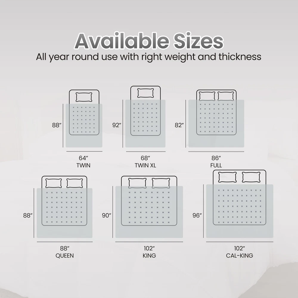 Comforter Duvet Insert: Queen comforter duvet insert measures 88 inches x 88 inches Box Style Stitching: Crisp looking comforter with siliconized fiber filling features piped edges with an elegant style box stitching that prevent the fill from shifting Siliconized Fiberfill: Extremely soft material with siliconized fiberfill alternative filling provides a comfy and cozy feel Corner Tabs: The four corner tabs make it extremely easy to put on any duvet cover and secures the comforter in place Machine Washable: Machine wash in the gentle cycle with cold water, line dry or tumble dry on heat