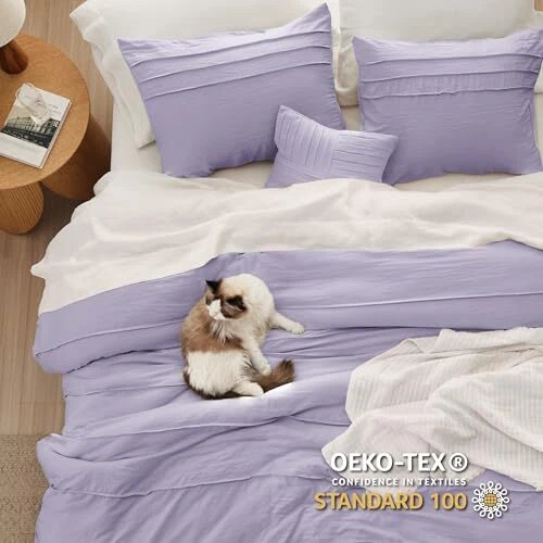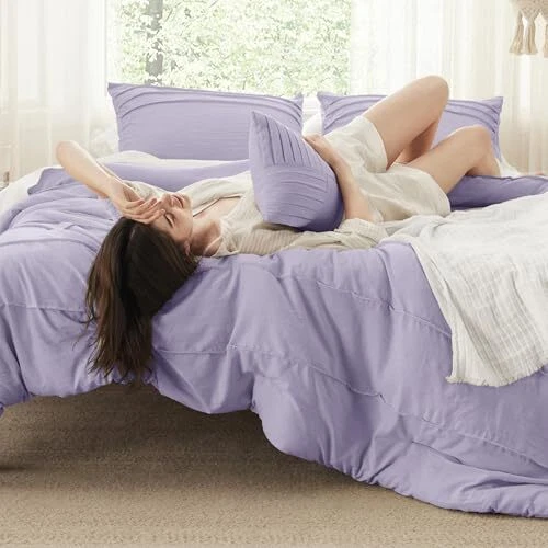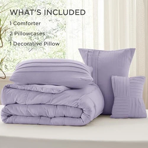Return Policy Fast Delivery Trusted seller Queen Comforter Set - 4 Pieces Pinch Pleat Bed Set, Light Purple Boho Bedding for All Season, 1 Soft Comforter, 2 Pillowcases, 1 Decorative Pillow Product Description Elegant Home Decor: This comforter set, a great option for Christmas gifts for her, combines an exquisite pinch pleat design with a stripe pattern, adding sophisticated style to any sleeping space and making it a thoughtful gift. Premium Filling: A wonderful choice for women Christmas gifts, this down alternative comforter features 's tested microfiber filling, maintaining a perfect balance between weight and warmth for a cloud-like sleeping experience all year. Extra Soft: Ideal for Christmas gift ideas, the prewashed microfiber cover offers exceptional softness and natural texture, ensuring maximum comfort without any rustling noise. Certified for Safety: This comforter set is an excellent pick for gifts for women, being Standard 100 by OEKO-TEX certified, ensuring it meets the highest standards for harmful chemical testing and is safe for humans. Easy Care: With premium microfiber fabric and ’s unique dyeing technique, this bedding set resists fading, shrinking, and seam slippage after washing. Machine wash separately in cold water on a gentle cycle and tumble dry low. Do not iron. Inclusive Bedding Set: This queen size comforter set comes with 1 comforter (90" x 90"), 2 pillowcases (20" x 26"), 1 Decorative pillow (12" x 16") to completely transform your bare mattress into a cozy sleep haven with year-round comfort and warmth. Shipping Returns Payment Shipping Shipping is FREE to all addresses other than APO/PO boxes in the lower 48 states. All our stock ships from US-based warehouses. Shipped via USPS or UPS (depending on location and package weight) Unless stated otherwise, all orders will ship within 24-72 hours of your payment being processed. Check our feedback to see the great reviews of FAST shipping we offer. Returns Seller does not accept returns Payment We currently accept payment via eBay managed payments only. Once payment is cleared, we will dispatch your shipment within 1-3 business days. Please refer to the "Shipping" tab for more information regarding shipping speed to your destination.