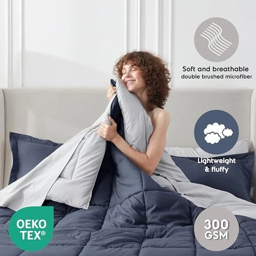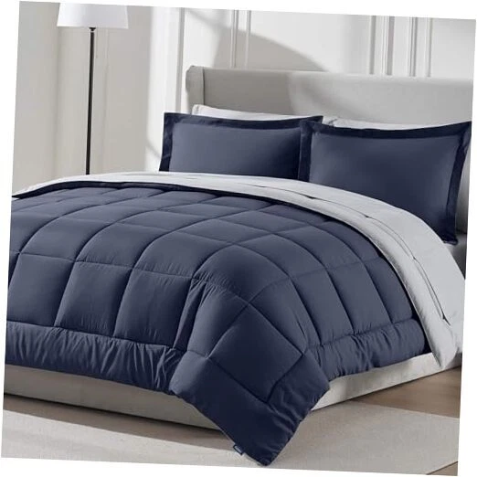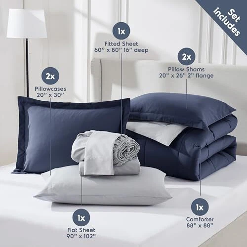 Return Policy Fast Delivery Trusted seller Queen Comforter Set 7 Piece - Reversible Comforters Queen Size Navy, Bed in a Bag Queen All Season, Queen Size Comforter Sets Bedding with Flat Sheet and Fitted Sheet, Pillowcases and Shams Product Description Double Brushed Microfiber Bed In A Bag, Queen Bed Comforter Set: Woven from high quality, 300 GSM microfiber that’s double brushed for ultimate softness, our lightweight, breathable, queen comforter set with sheets will transform your bedroom into a luxurious haven. Queen Comforter Set, 7 Piece: 1 Comforter 88" x 88", 1 Fitted Sheet 60" x 80" fits mattresses up to 16” deep, 1 Flat Sheet 90" x 102", 2 Pillowcases 20" x 30" and 2 Pillow Shams 20" x 26" + 2” flange with envelope closure. Reversible Queen Bed Set: Dual colors on the all-season fluffy comforter keep your bedroom style fresh, and the elegant, diamond-pattern stitching keeps the filling from shifting. The fitted sheet includes elastic all the way around, so it stays in place all night long. Easy Care and Cleaning: Our queen bed in a bag set is machine washable and fade, stain, shrink and wrinkle resistant. Available in a variety of beautiful colors, our bedding comforter sets are durable and made to last. Rest Easy with : We proudly support sustainable practices with OEKO-Tex Standard 100 Certification. Shop queen size comforter sets with confidence because no matter what, we’ve got you covered. Shipping Returns Payment Shipping Shipping is FREE to all addresses other than APO/PO boxes in the lower 48 states. All our stock ships from US-based warehouses. Shipped via USPS or UPS (depending on location and package weight) Unless stated otherwise, all orders will ship within 24-72 hours of your payment being processed. Check our feedback to see the great reviews of FAST shipping we offer. Returns Seller does not accept returns Payment We currently accept payment via eBay managed payments only. Once payment is cleared, we will dispatch your shipment within 1-3 business days. Please refer to the "Shipping" tab for more information regarding shipping speed to your destination.