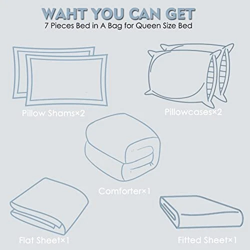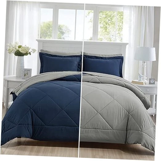 Return Policy Fast Delivery Trusted seller Queen Comforter Set 7 Pieces Bed in a Bag, Full/Queen Reversible Bed Set with Comforter, Flat Sheet, Fitted Sheet, Pillowcases & Shams, Navy Blue and Grey Bedding Sets for Queen Size Bed Product Description 【Soft and Comfortable】Crafted from premium brushed microfiber insert, the cloud-like down alternative filling creates a fluffy and lightweight comforter, providing just the right amount of warmth and comfort for the best sleep all year round 【Reversible Design】Ingenious plaid quilting design prevents the filling from shifting or clumping and revives your bedding with an elegant appearance. Its reversible design features two solid colors so you can achieve two different looks 【Bed in a Bag】Our full/queen size bed in a bag includes 1 Comforter 88"x88", 2 Pillow Shams 20"x26", 1 Flat Sheet 90"x102" , 1 Fitted Sheet 60"x80"+15" and 2 Pillowcase 20"x30"; The bedding set is packaged in a vacuum bag, so you can dry it in low heat or tap the comforter gently while baking it in the sun to fluffy again 【Machine Washable】The comforter sets are machine washable which can save you more time and energy. For year round softness and prevent pilling up, it's highly recommend to wash it in the gentle cycle with cold water, sun-dry or tumble dry in low when needed 【Perfect Home Decoration】The comforter coverlet set will revive your bedding in flash with an elegant facade. We are devoted to offering you premium products and caring service. Please feel free to contact us if you have any questions about our products. Shipping Returns Payment Shipping Shipping is FREE to all addresses other than APO/PO boxes in the lower 48 states. All our stock ships from US-based warehouses. Shipped via USPS or UPS (depending on location and package weight) Unless stated otherwise, all orders will ship within 24-72 hours of your payment being processed. Check our feedback to see the great reviews of FAST shipping we offer. Returns Seller does not accept returns Payment We currently accept payment via eBay managed payments only. Once payment is cleared, we will dispatch your shipment within 1-3 business days. Please refer to the "Shipping" tab for more information regarding shipping speed to your destination.