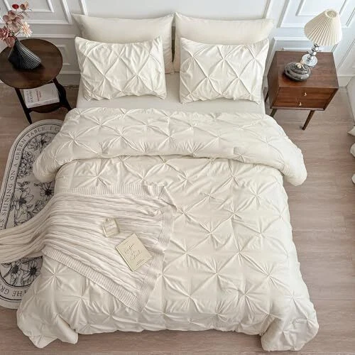 Return Policy Fast Delivery Trusted seller Queen Comforter Set, 7 Pieces Bed in a Bag Queen, Pintuck Bedding Sets with Comforter, Sheets, Pillowcases & Shams - Cream Product Description Elegant Design: Featuring a luxurious pinch pleat design, this bed set adds an elegant and timeless touch to your bedroom decor. Its intricate pleating creates a sophisticated, textured look that instantly elevates the style of your space. Premium Material: Crafted from ultra-soft microfiber, this bed in a bag offers incredible comfort for a restful night's sleep. The comforter features a hypoallergenic down alternative filling, providing the warmth and softness for year-round use. Deep Pockets: The bed set includes ultra-soft fitted and flat sheets that offer a cozy, breathable sleep surface. The fitted sheet is designed with a 14-inch deep pocket, ensuring it securely fits thicker mattresses without slipping or bunching. Easy Care: Designed for hassle-free maintenance, this bedding set is machine washable and made to withstand frequent washing. The durable materials and craftsmanship ensure it stays fresh and beautiful for years to come. What You Will Get: 1 Comforter (88" X 88"), 2 Pillowcases (20"X 30"), 2 Pillow Shams (20"X 26"), 1 Flat Sheet (90" X 102"), 1 Fitted Sheet (60" X 80"). And 24-hour after-sales service. Shipping Returns Payment Shipping Shipping is FREE to all addresses other than APO/PO boxes in the lower 48 states. All our stock ships from US-based warehouses. Shipped via USPS or UPS (depending on location and package weight) Unless stated otherwise, all orders will ship within 24-72 hours of your payment being processed. Check our feedback to see the great reviews of FAST shipping we offer. Returns Seller does not accept returns Payment We currently accept payment via eBay managed payments only. Once payment is cleared, we will dispatch your shipment within 1-3 business days. Please refer to the "Shipping" tab for more information regarding shipping speed to your destination.