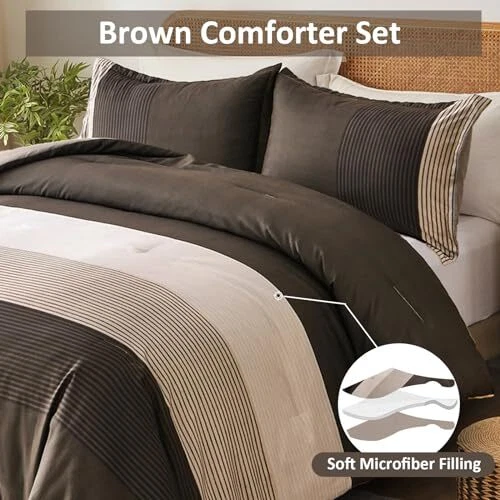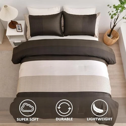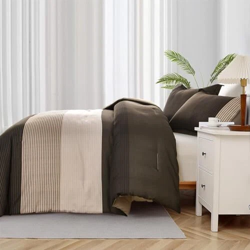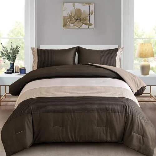 Return Policy Fast Delivery Trusted seller Brown Comforter Set Queen, Reversible Brown Striped Down Alternative Comforter for Queen Bed,3 Pieces (1 Comforter+2 Pillowcases), Soft Microfiber Bedding Duvet Set 90"×90" Product Description [BROWN STRIPED PATTERN] This brown comforter queen adopts the design of splicing stripes. The alternation of striped patchwork design not only brings visual beauty, but also the best gift for decorating the bedroom. [SIZES OF Queen COMFORTER] This queen size brown comforter include 1 comforter (104"×90"), 2 envelope-style pillowcases(20"×38"). Suits for all Seasons. [ULTRA SOFT FILLING ] Our comforter used the whole piece of polyester as the filling of the comforter which makes the comforter more soft and warm. High density stitches make sure to avoid the comforter to shifting and clumping. [EASY CARE] Premium quality fabric will not tear, requires little maintenance when washing, which saves you a lot of time and energy. Machine washable in cold water. [WARM TIPS] Because of the vacuum package, you can tap it gently while baking it in the sun for a few hours to make it fluffy again. Shipping Returns Payment Shipping Shipping is FREE to all addresses other than APO/PO boxes in the lower 48 states. All our stock ships from US-based warehouses. Shipped via USPS or UPS (depending on location and package weight) Unless stated otherwise, all orders will ship within 24-72 hours of your payment being processed. Check our feedback to see the great reviews of FAST shipping we offer. Returns Seller does not accept returns Payment We currently accept payment via eBay managed payments only. Once payment is cleared, we will dispatch your shipment within 1-3 business days. Please refer to the "Shipping" tab for more information regarding shipping speed to your destination.