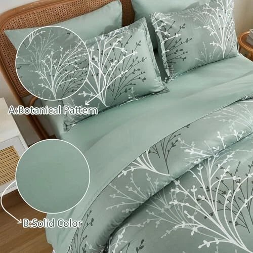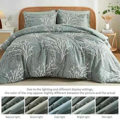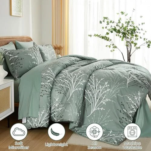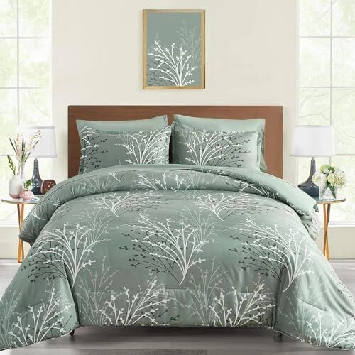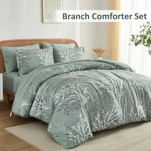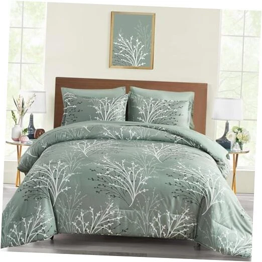 Return Policy Fast Delivery Trusted seller Sage Green Comforter Set Queen Size Branch Botanical 7 Piece Bed in a Bag Green Floral Bedding Sets, Soft Microfiber Branches Leaves Pattern Reversible Comforter Set for All Season (90''x90'') Product Description Sage Green Branch Comforter Set: A timeless bedding set that exudes sophistication and refinement. The elegant branches design, paired with a beautiful sage green color palette, creates a soothing and calming effect, effortlessly blending with any bedroom decor. The matching pillowcases and solid color reverse balance the look, ensuring a seamless and cohesive aesthetic Cozy and Durable: Indulge in the ultimate comfort of our premium soft microfiber queen bed comforter set. Made with high-quality, long-lasting fabrics, this comforter set is not only durable but also effortlessly exudes timeless charm, making it a beautiful and functional addition to your bedroom What You Can Get: This sage green floral queen comforter bed in a bag comes with 1 comforter(90”x90”), 1 flat sheet(90”x102”), 1 fitted sheet(60”x80”+14”), 2 pillow shams(20”x26”), 2 pillowcases(20”x30”). This queen bedding is designed to elevate your sleep quality and transform your bedroom into a cozy retreat, allowing you to bid farewell to rough and uncomfortable bedding and embrace restful nights of sleep, night after night All Seasons: Botanical bed set is suitable for all season uses, featuring soft fabrics that keep you warm in winter and remain breathable in summer. Meticulously crafted with attention to detail, the hidden neat stitching prevents the filling in the queen comforter set from shifting or clumping after washing, giving you a wonderful sleeping experience Easy Care: Machine wash separately in cold water, gentle cycle. Tumble dry low, do not bleach. To ensure optimal fluffiness and softness, we recommend tumble drying the queen comforter bedding set on delicate mode at low temperature for 20 minutes before use. This simple step allows the bedding to naturally expand and fluff up, offering a cloud-like feel and enhanced sleep experience from the very first night Shipping Returns Payment Shipping Shipping is FREE to all addresses other than APO/PO boxes in the lower 48 states. All our stock ships from US-based warehouses. Shipped via USPS or UPS (depending on location and package weight) Unless stated otherwise, all orders will ship within 24-72 hours of your payment being processed. Check our feedback to see the great reviews of FAST shipping we offer. Returns Seller does not accept returns Payment We currently accept payment via eBay managed payments only. Once payment is cleared, we will dispatch your shipment within 1-3 business days. Please refer to the "Shipping" tab for more information regarding shipping speed to your destination.