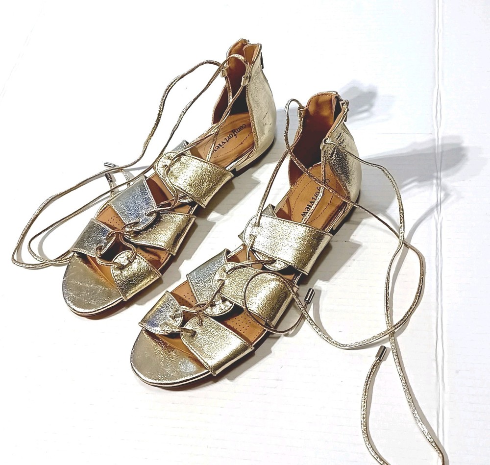 Comfortview Women's Gold Metallic Gladiator Sandals Size 10