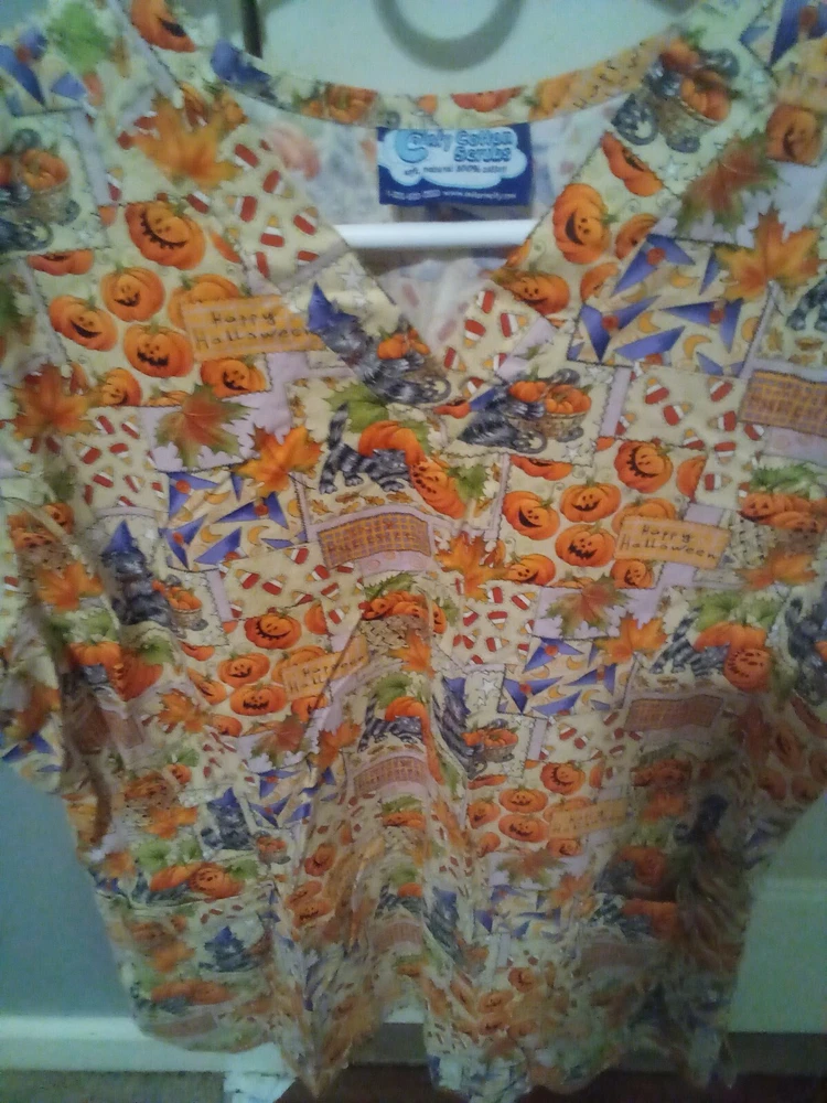 Comfy Cotton Scrubs Halloween print L pumpkins candy corn 2 bottom pockets