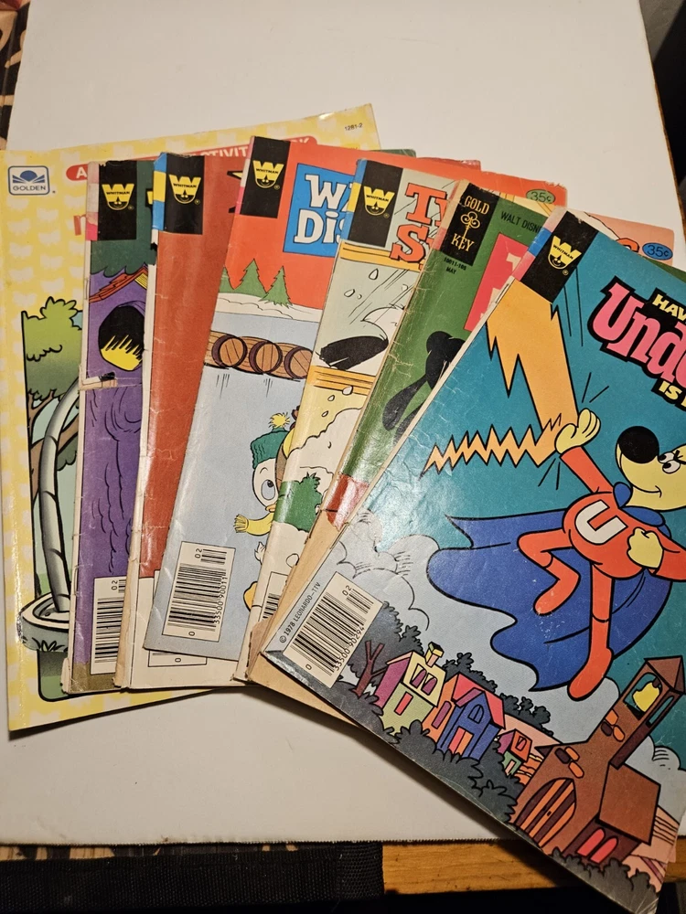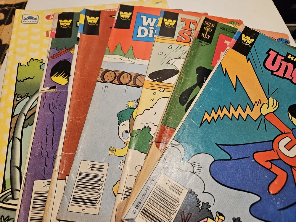 Lot of 7 These are from the top shelf in the attic. Not in perfect condition, but still fun to read! The coloring book only has 1 page colored. A couple comics are missing the very back page. 70's and 80's.