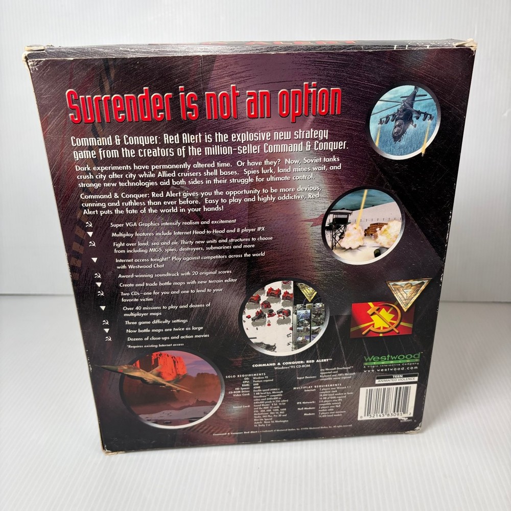 Immerse yourself in the classic real-time strategy world of Command & Conquer Red Alert, a pivotal entry in the acclaimed series. This iconic PC CD-ROM game plunges players into an alternate history where the Allies and Soviets clash in an epic global conflict. Experience intense strategic gameplay, commanding vast armies, constructing formidable bases, and deploying a diverse array of military units, from tanks and aircraft to naval vessels and unique experimental weapons, to dominate the battlefield and rewrite history. This original PC CD-ROM release for Windows 95 offers the complete Red Alert experience, including both the Allied and Soviet campaigns across two distinct discs. Dive into a rich narrative, engage in challenging skirmish battles, and utilize the included map editor to create custom scenarios. The game also features robust multiplayer options, allowing for thrilling head-to-head competition against other players. This edition comes in its original big box packaging, complete with the main game discs and an additional 'Command & Conquer Universe of Games' booklet, offering a comprehensive package for strategy game enthusiasts.